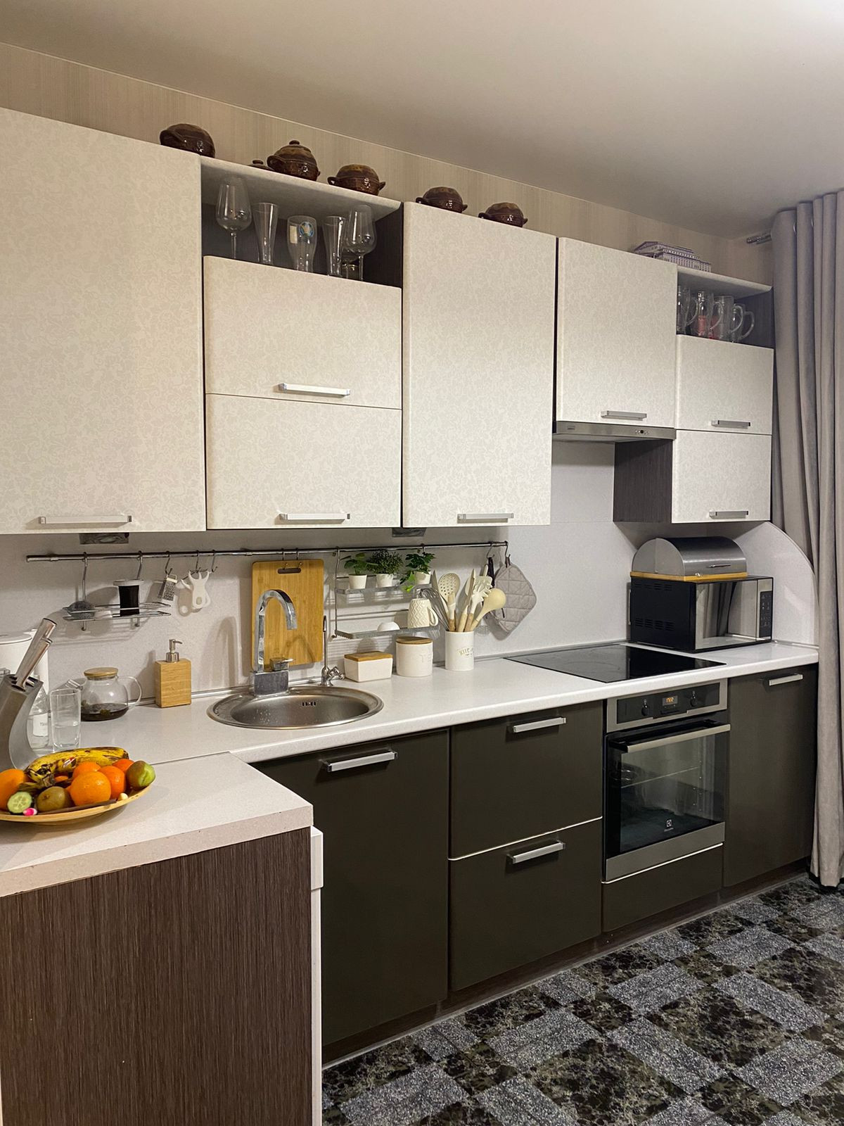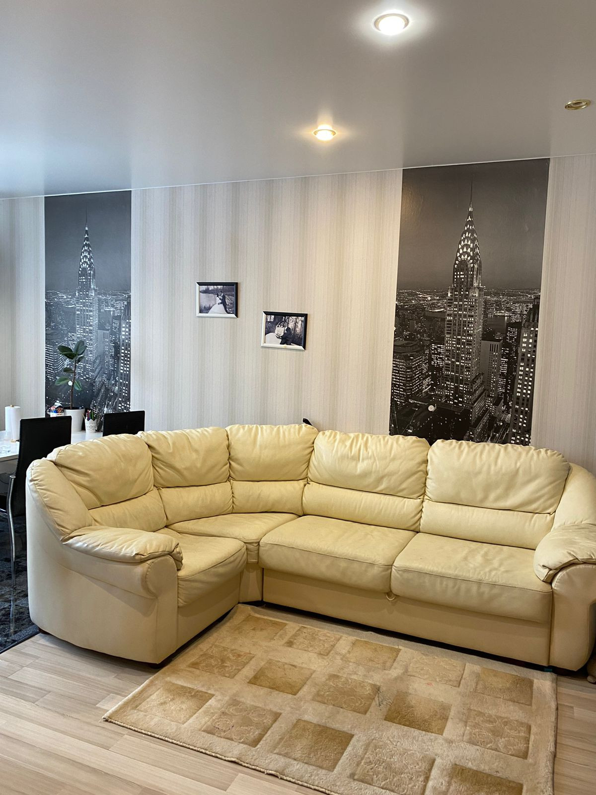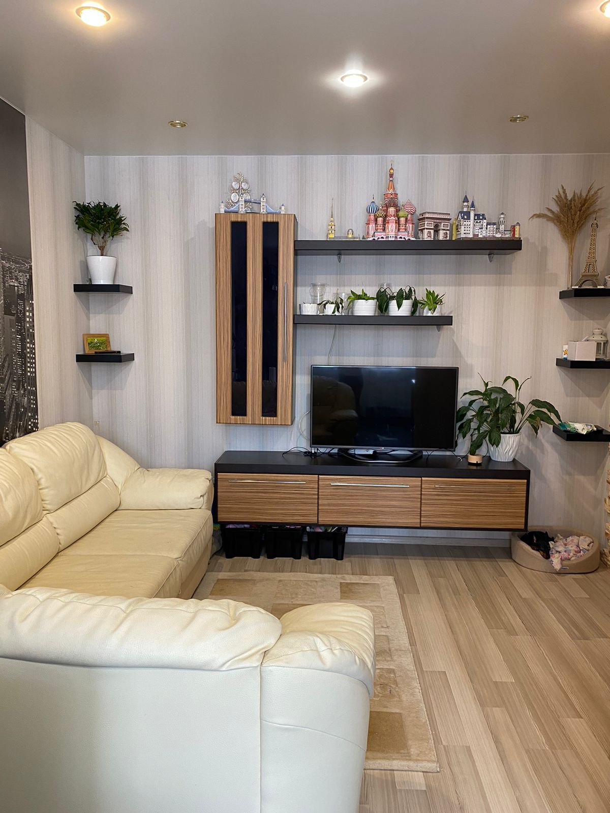 В квартире остается кухонный гарнитур, встроенный духовой шкаф, варочная панель и вытяжка, стенка в гостиной зоне, шкаф в прихожей и сантехника в ванной. Остальное по договоренности.
