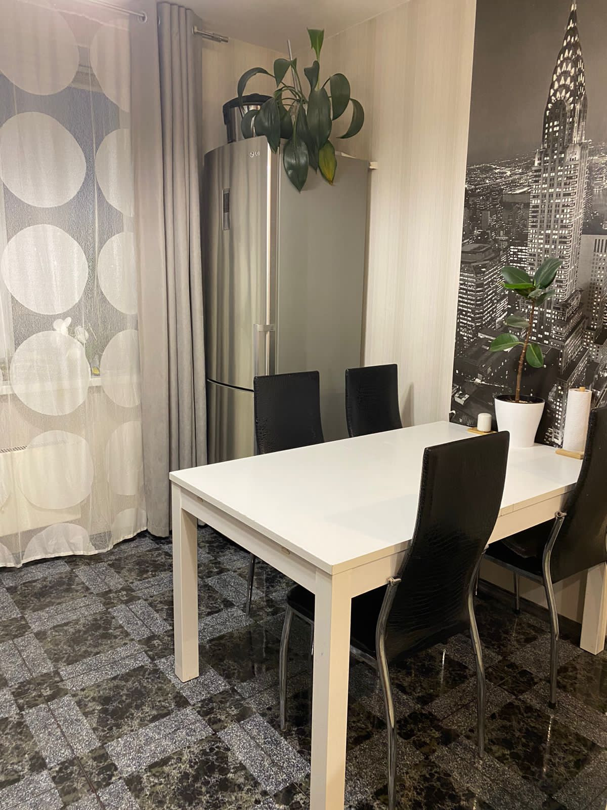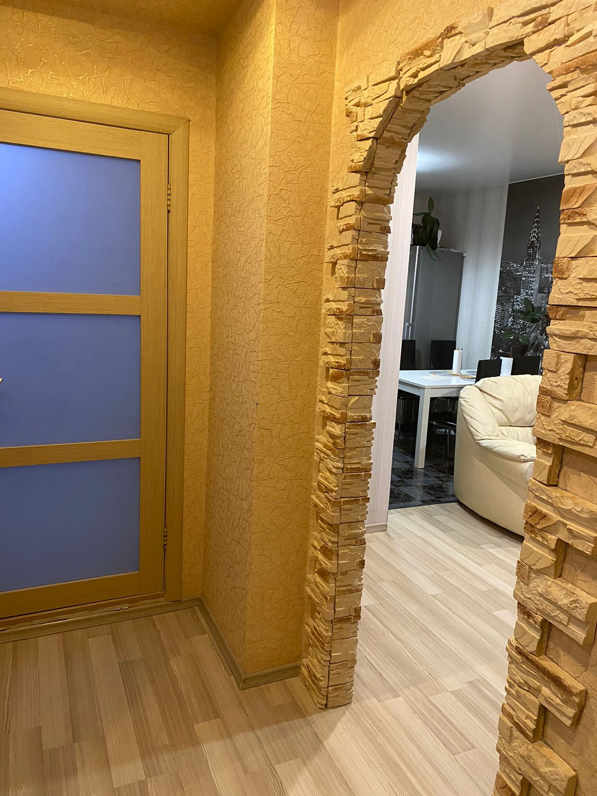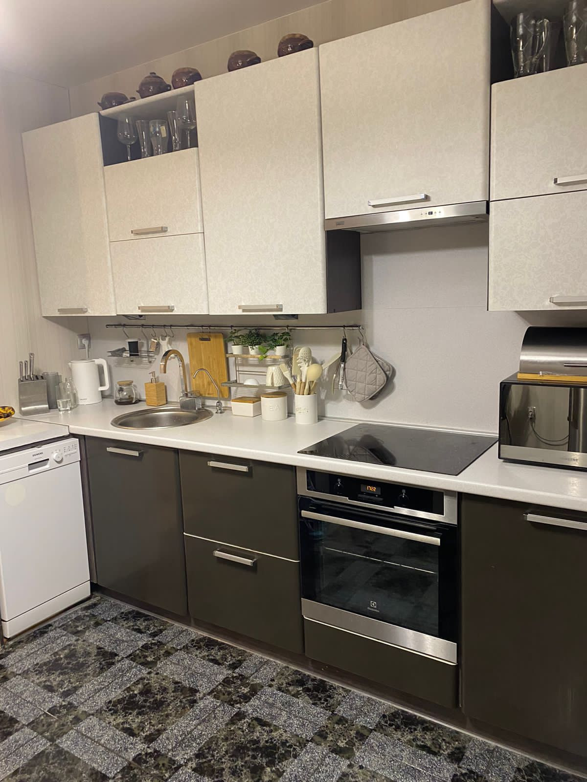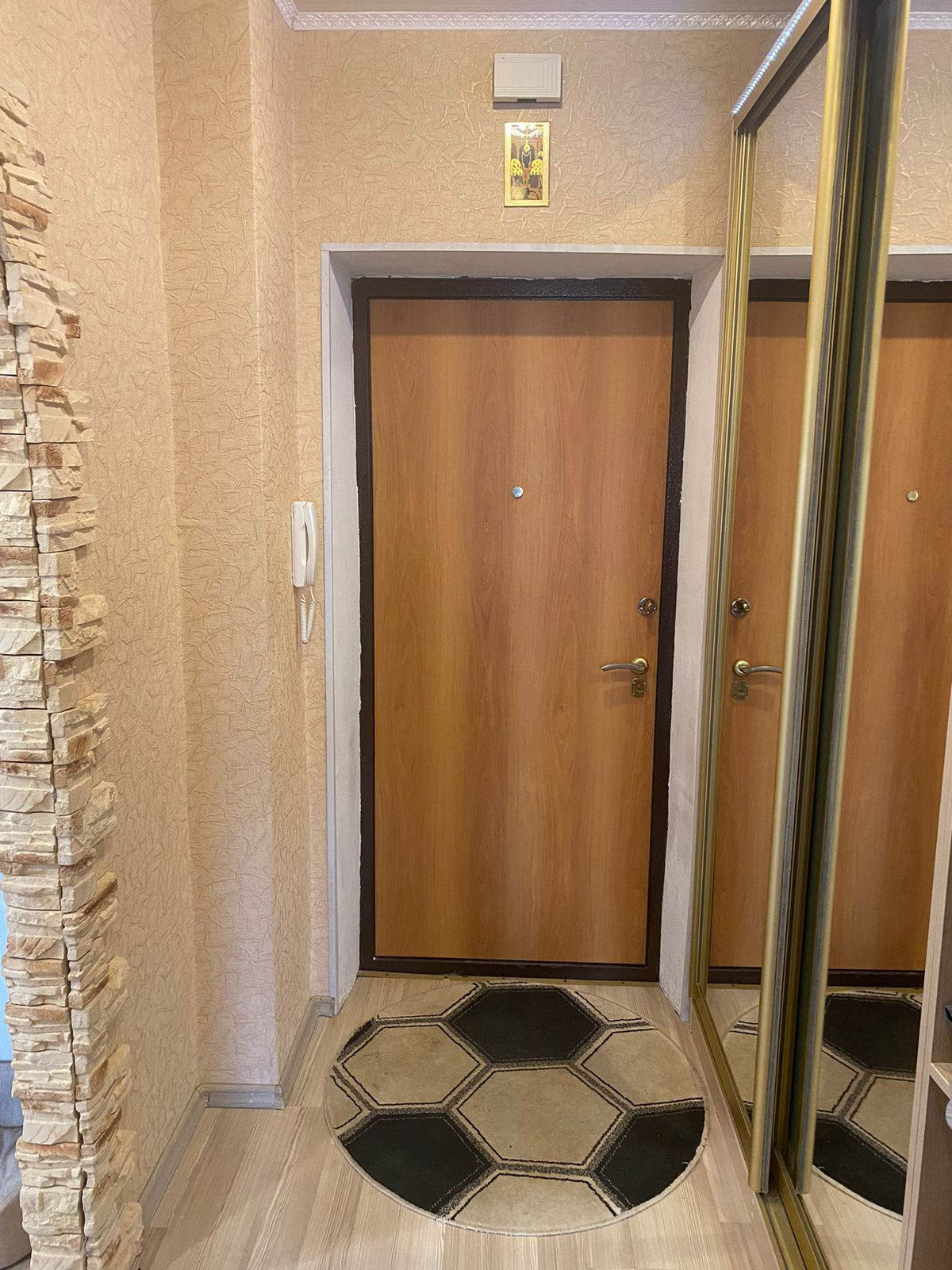 В квартире остается кухонный гарнитур, встроенный духовой шкаф, варочная панель и вытяжка, стенка в гостиной зоне, шкаф в прихожей и сантехника в ванной. Остальное по договоренности.