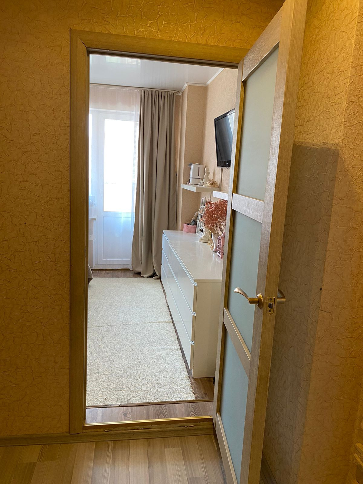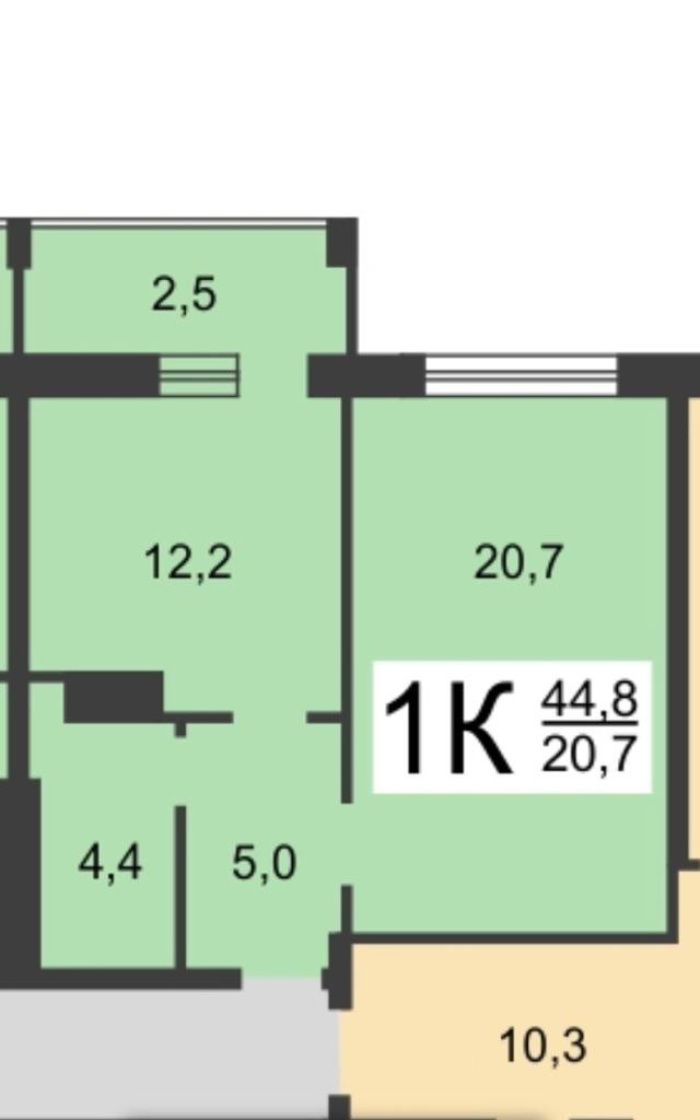 Продается 1-комнатная квартира 44,8 м., Просторная кухня-гостиная 20,7 м., квадратная спальня 12,2 м., лоджия немного утеплена, за счет чего осенью и весной там комфортно находится, сделана, как мини кабинет с большим шкафом для хранения во всю стену. В прихожей так же вместительный шкаф купе, туалет с ванной совмещены - 4,4 м. с большой душевой кабиной 120*90.