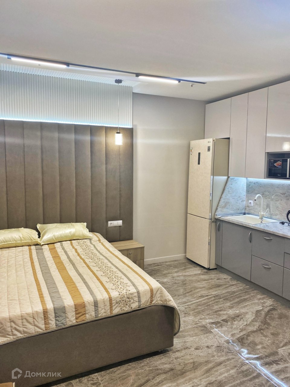 В апартаментах выполнен дизайнерский ремонт из дорогих, качественных отделочных материалов в современном стиле.