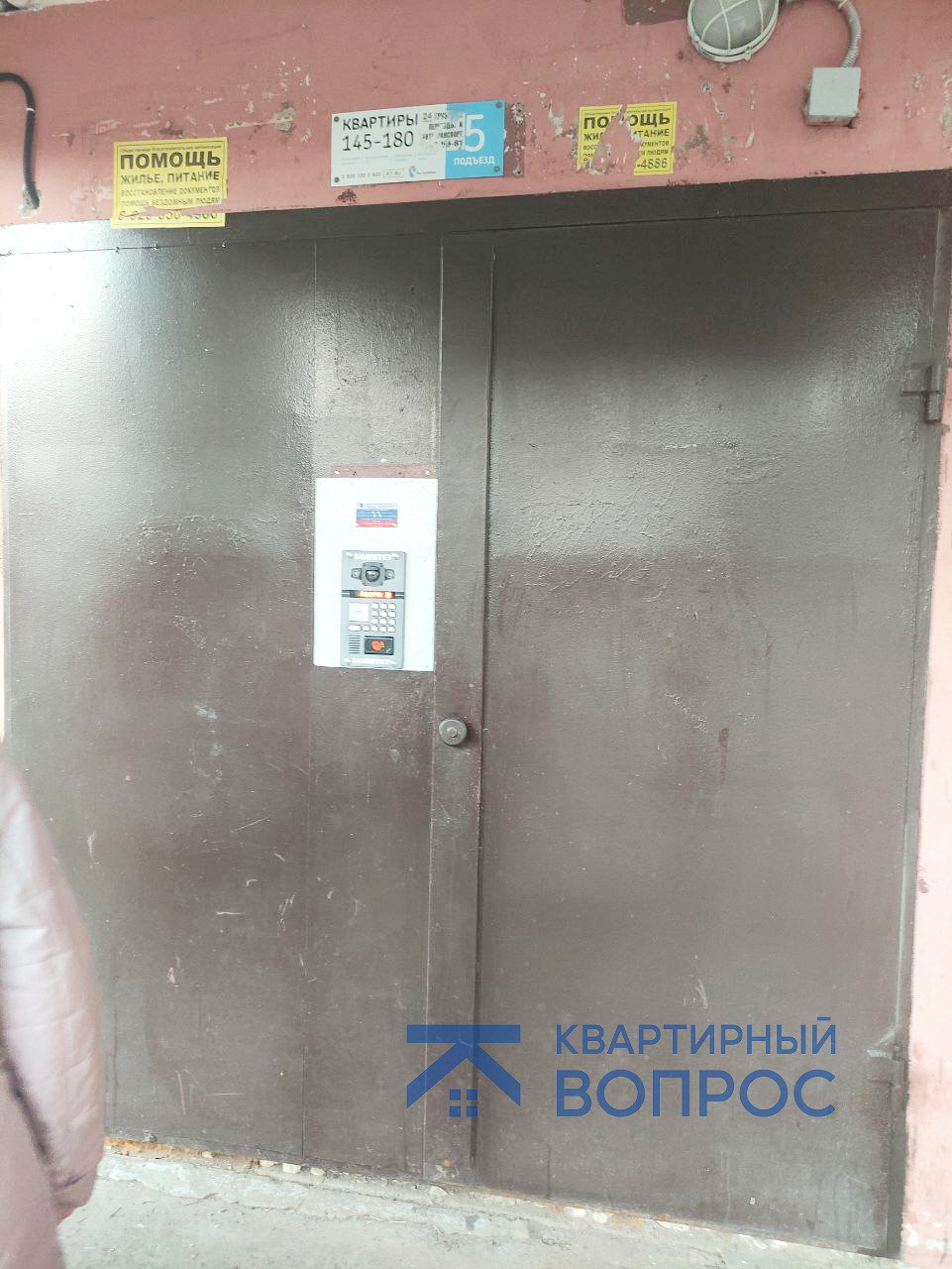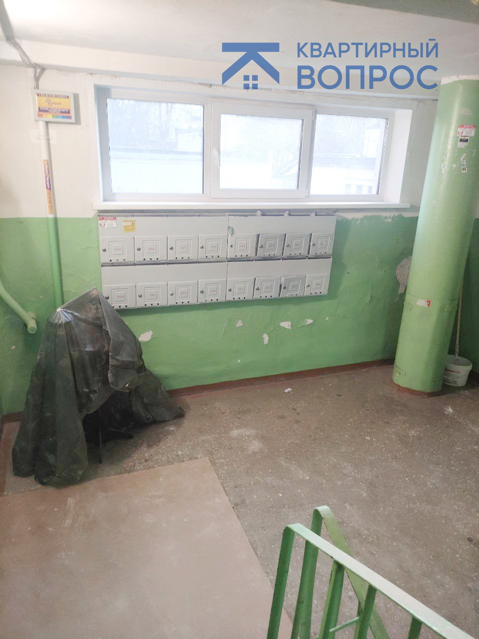 Тамбур на две квартиры. В подъезде свежий ремонт (фото в подъезде сделаны во время