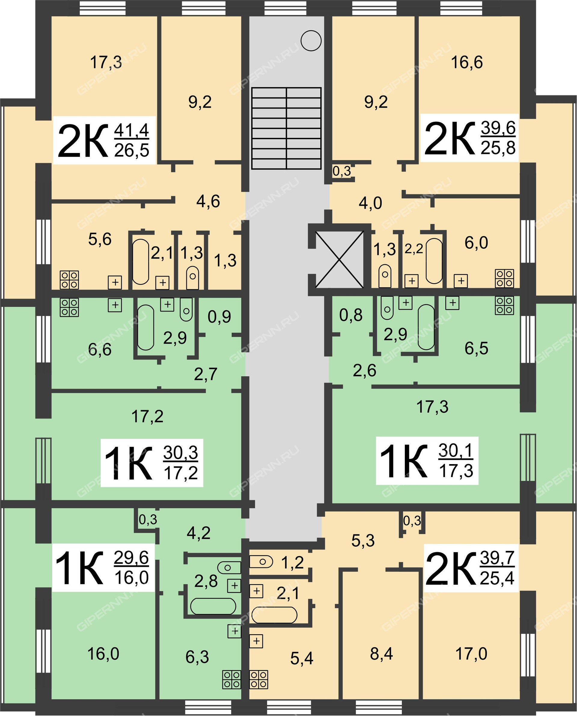 Общая площадь 29.7 м2
