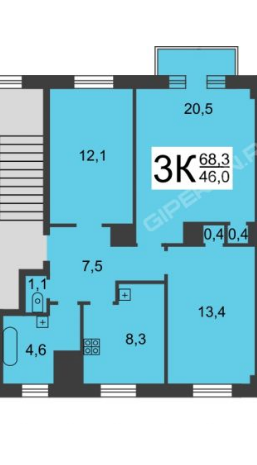 Общая площадь 66.5 м2