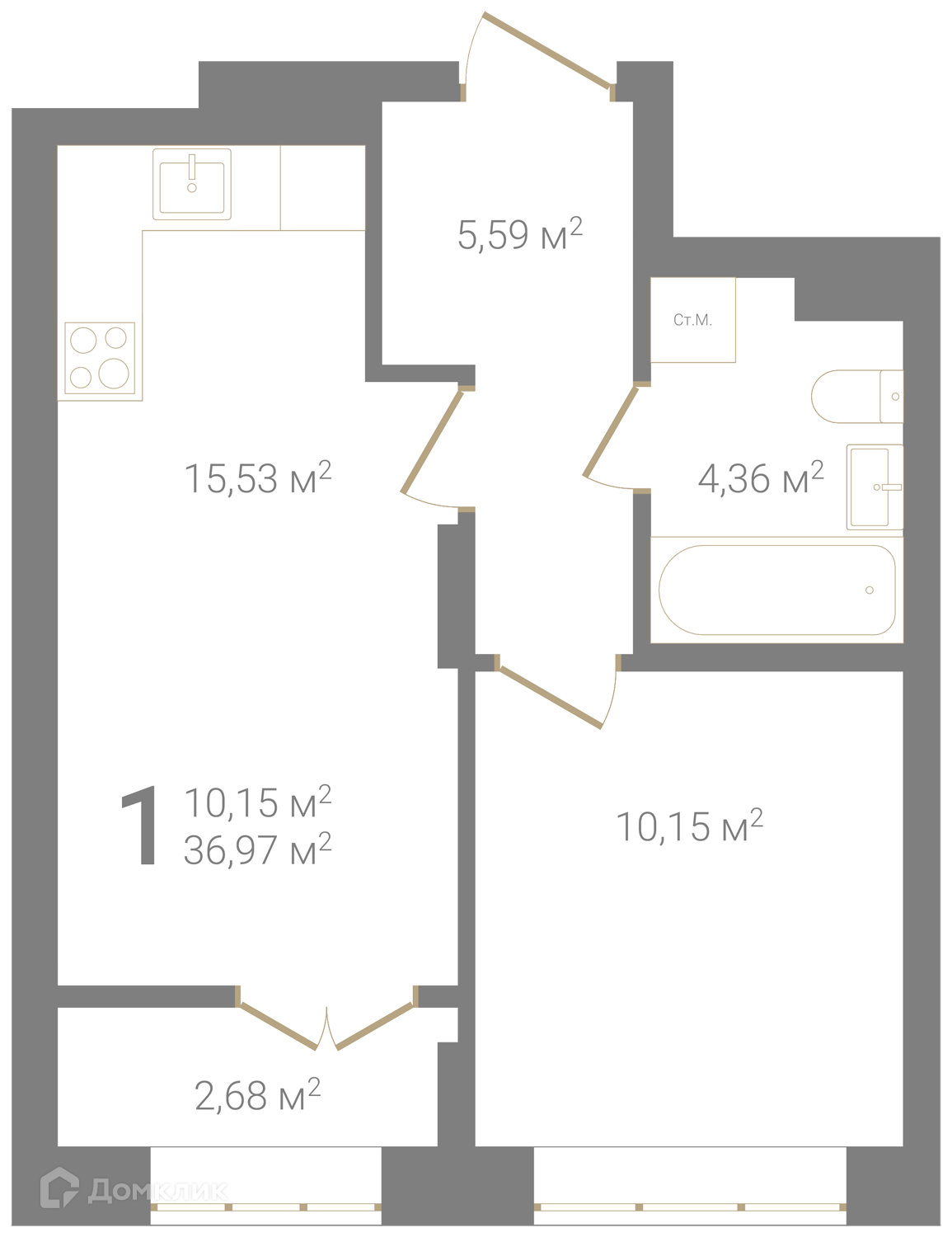 Общая площадь 36.97 м2
