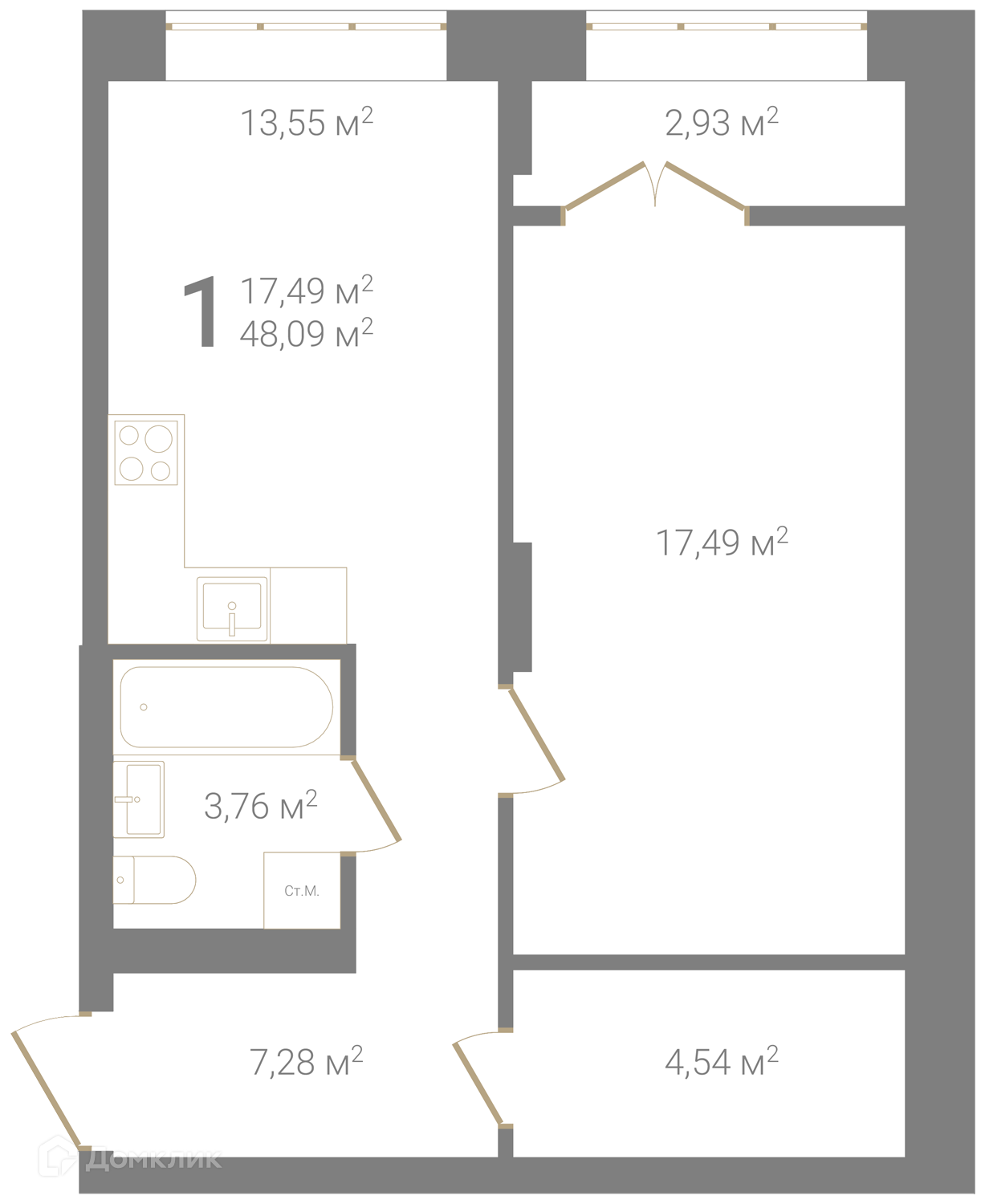 Общая площадь 48.09 м2
