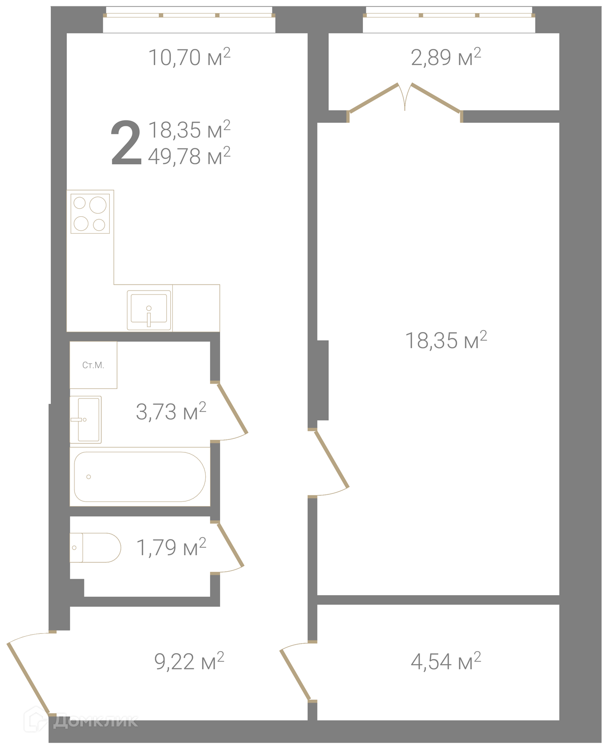 Общая площадь 49.78 м2