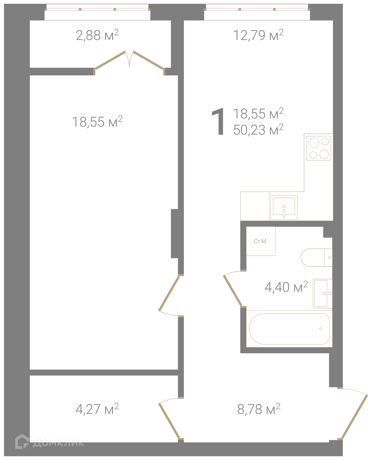Площадь кухни 12.79 м2