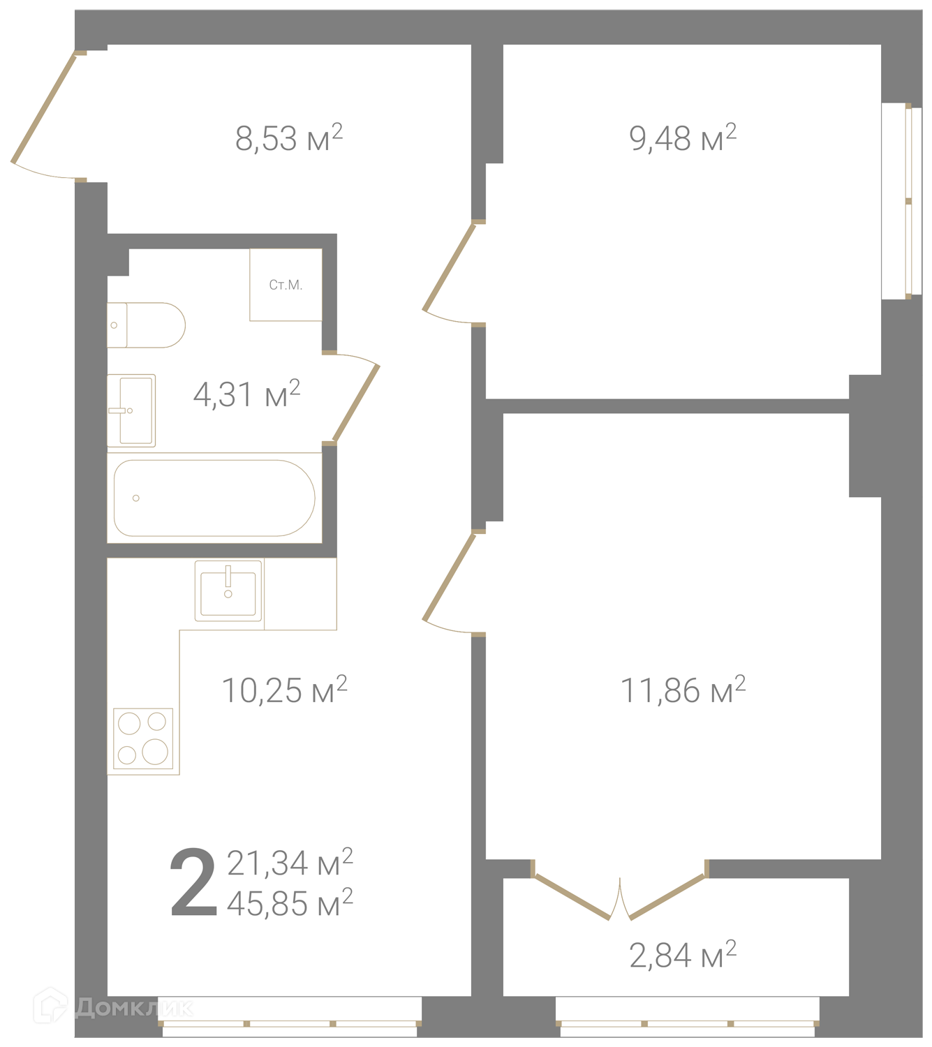 Общая площадь 45.85 м2