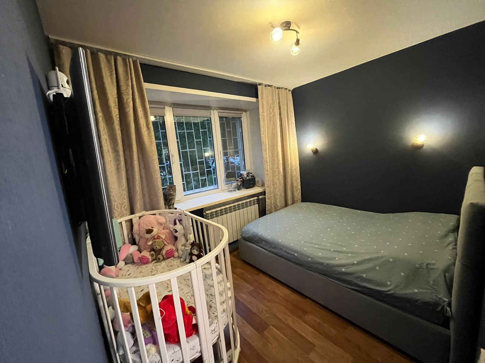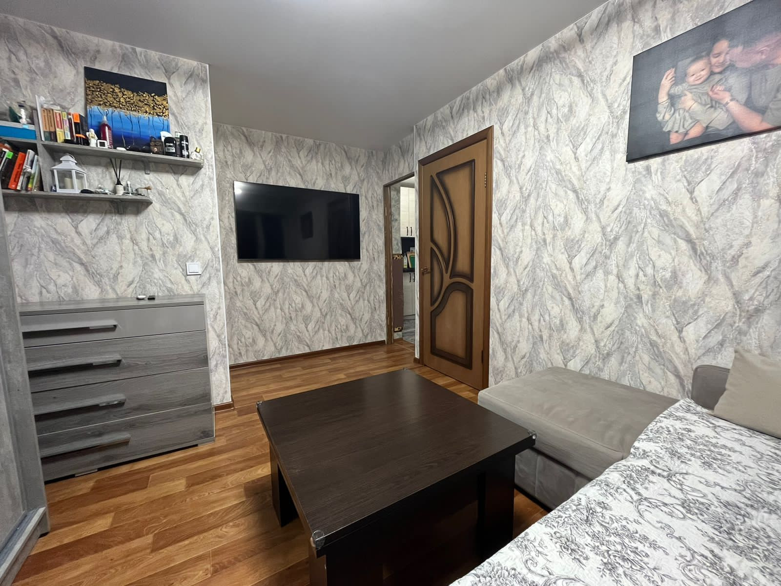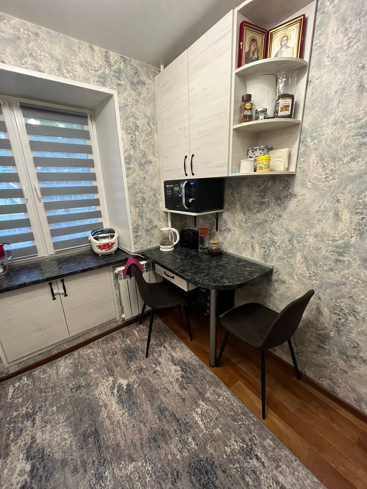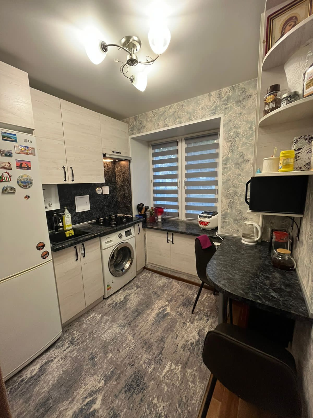 В квартире выполнен свежий ремонт (2022г.), произведена перепланировка, разграничены спальная и гостиная зоны, замена всей проводки с электросчетчиком, также заменены все радиаторы отопления и трубы от подвала до второго этажа. Функциональная кухня по индивидуальному заказу.