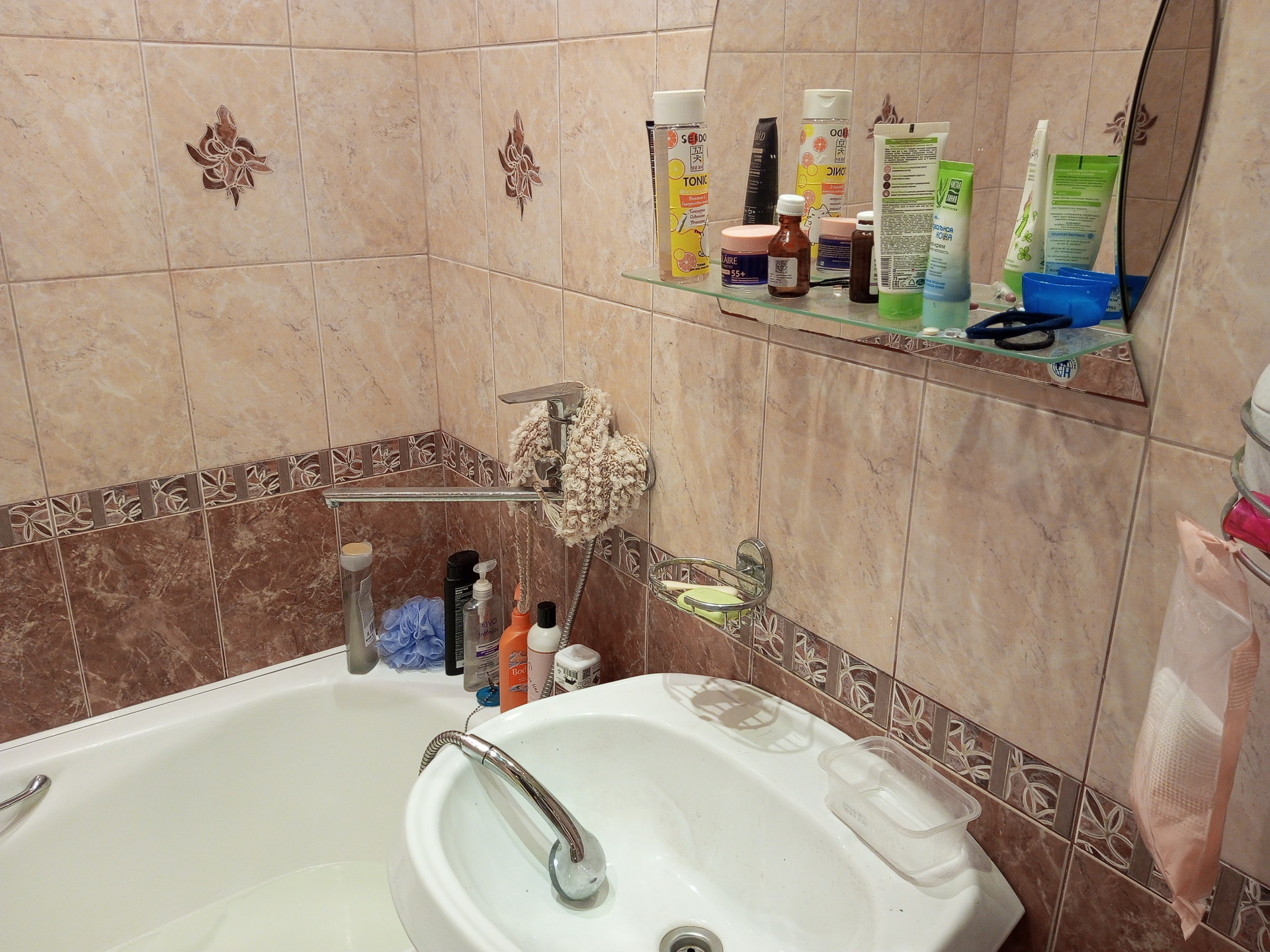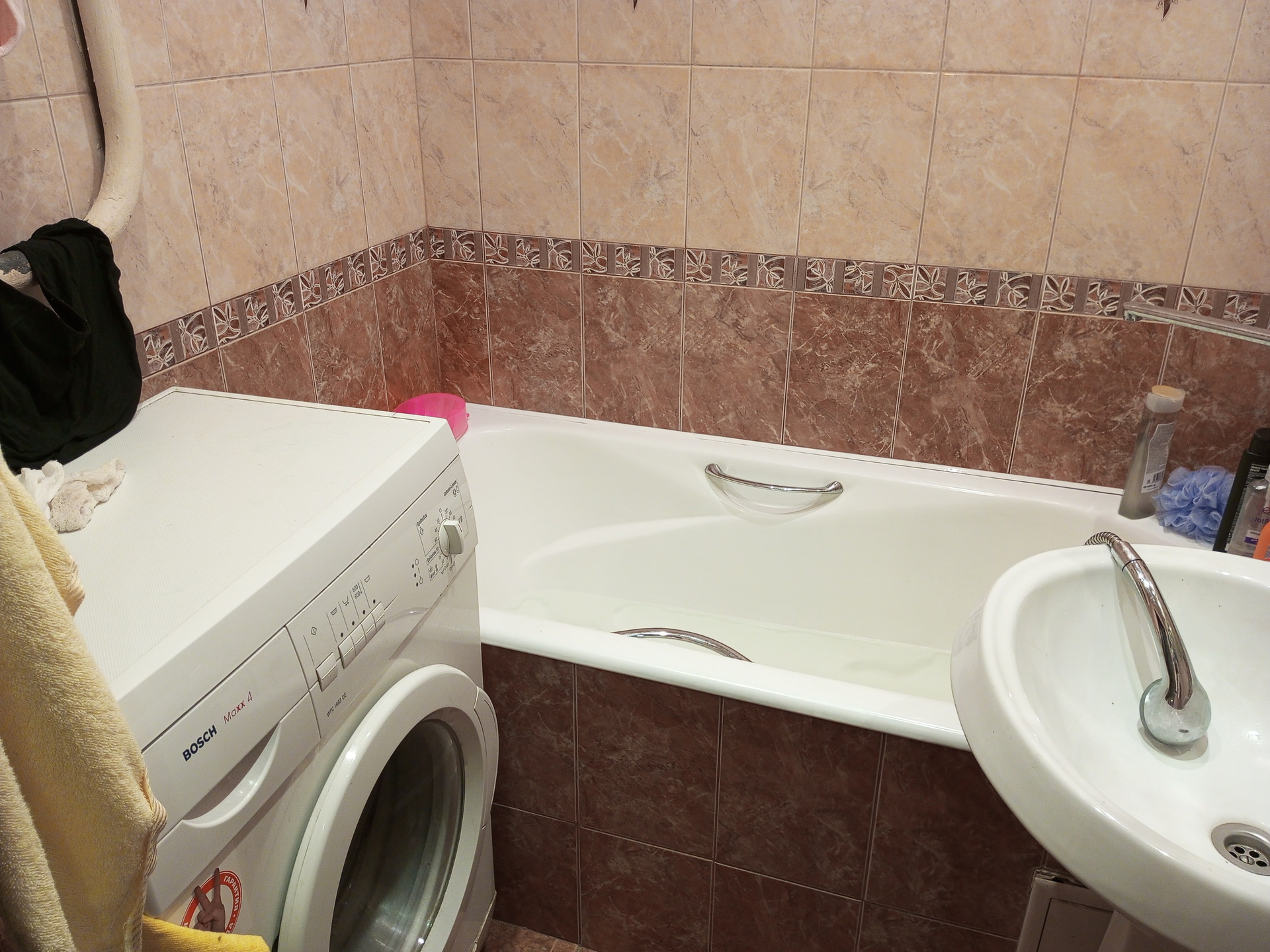 Ванна чугунная в кафеле, туалет - тоже.
