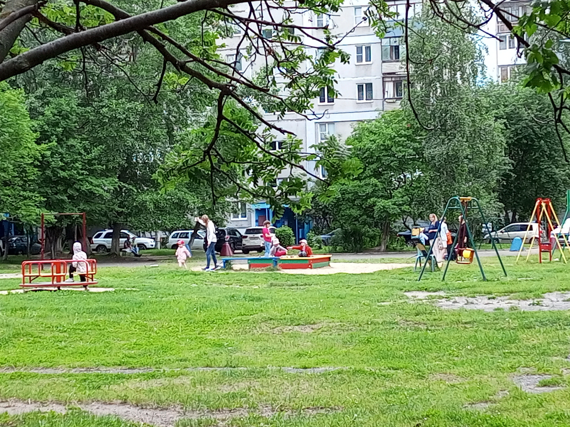 Во дворе детская площадка.