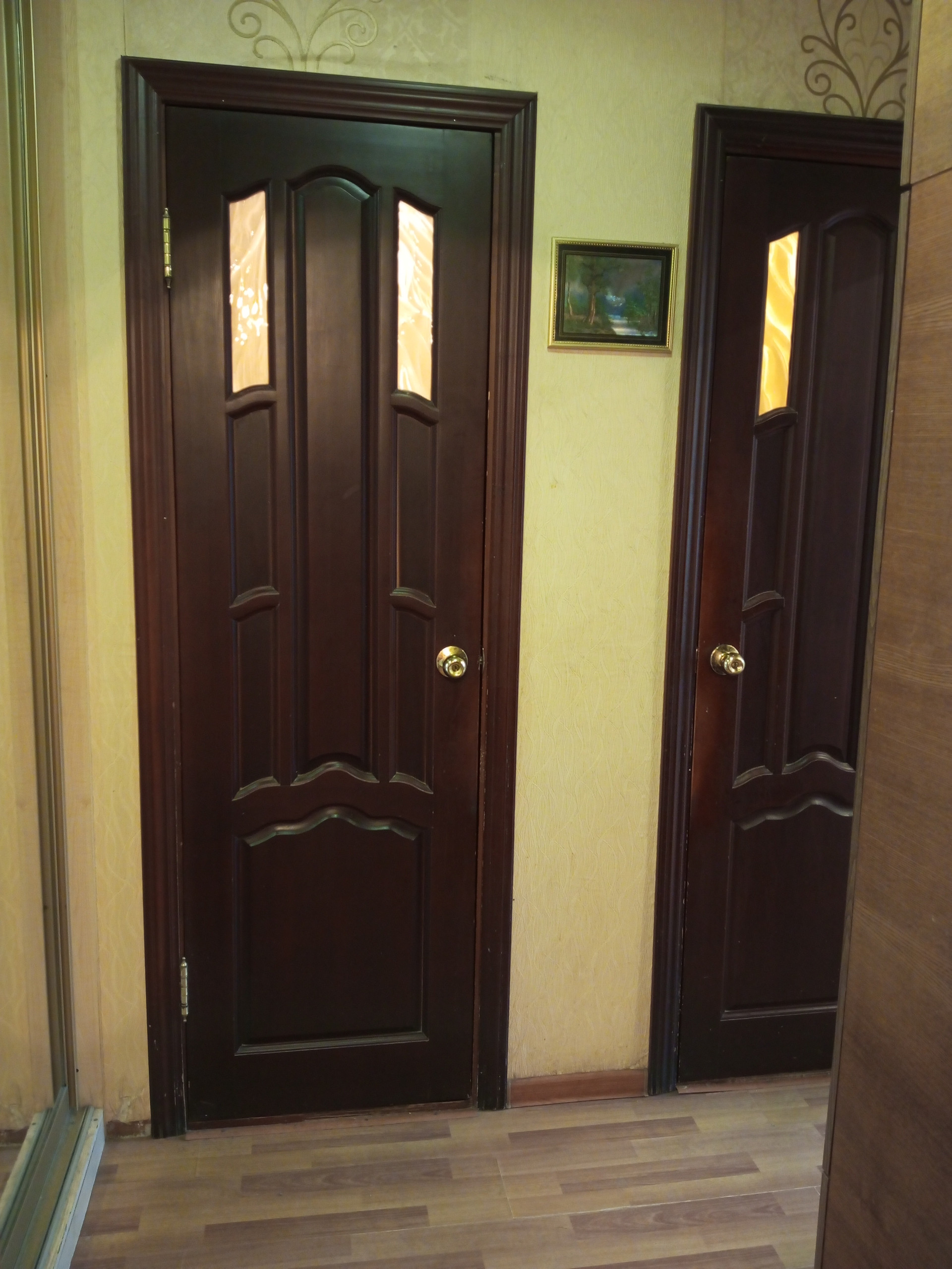 ПРОСТОРНЫЙ КОРИДОР СО ВСТРОЕННЫМ, ЗЕРКАЛЬНЫМ ШКАФОМ.