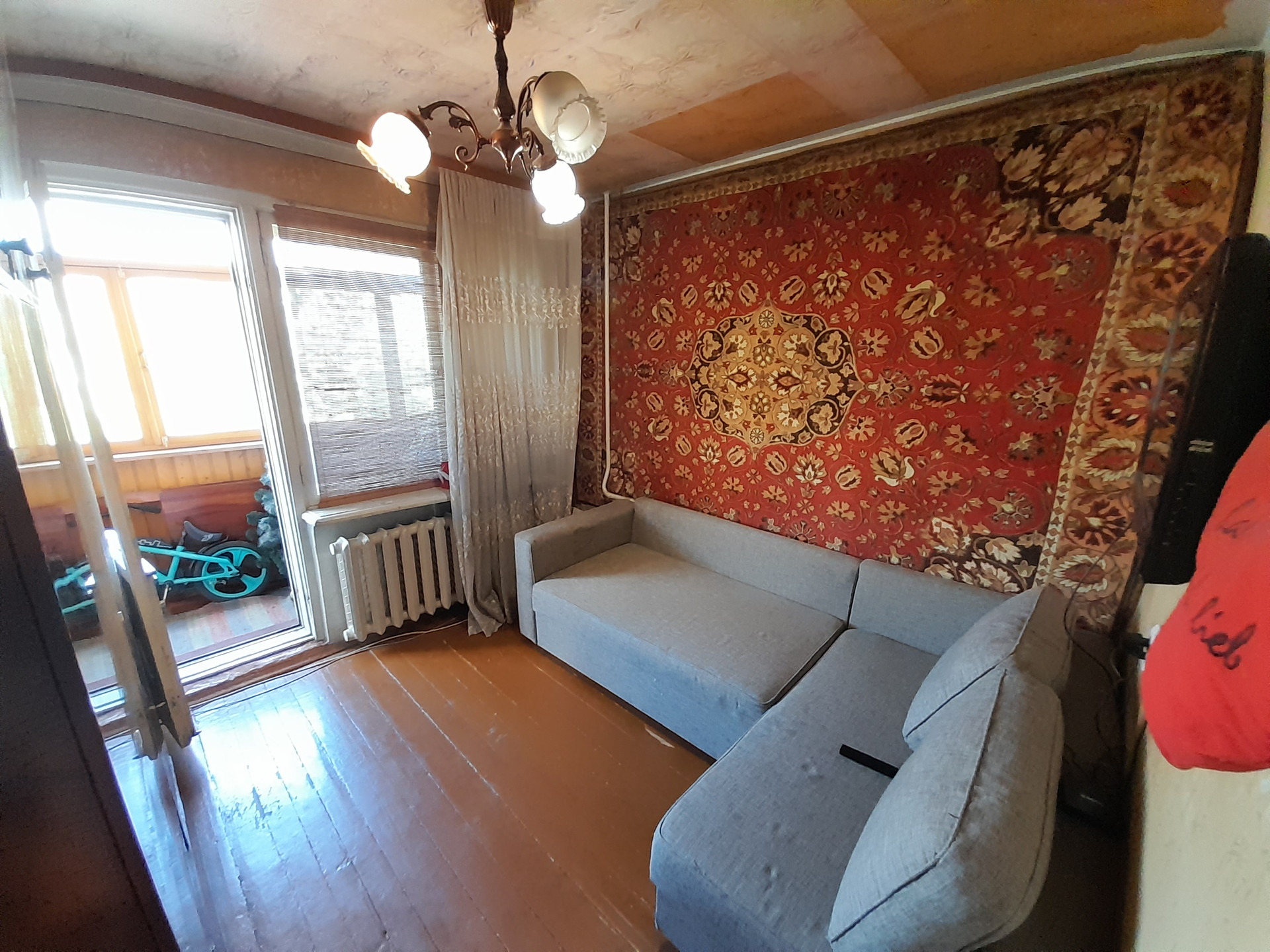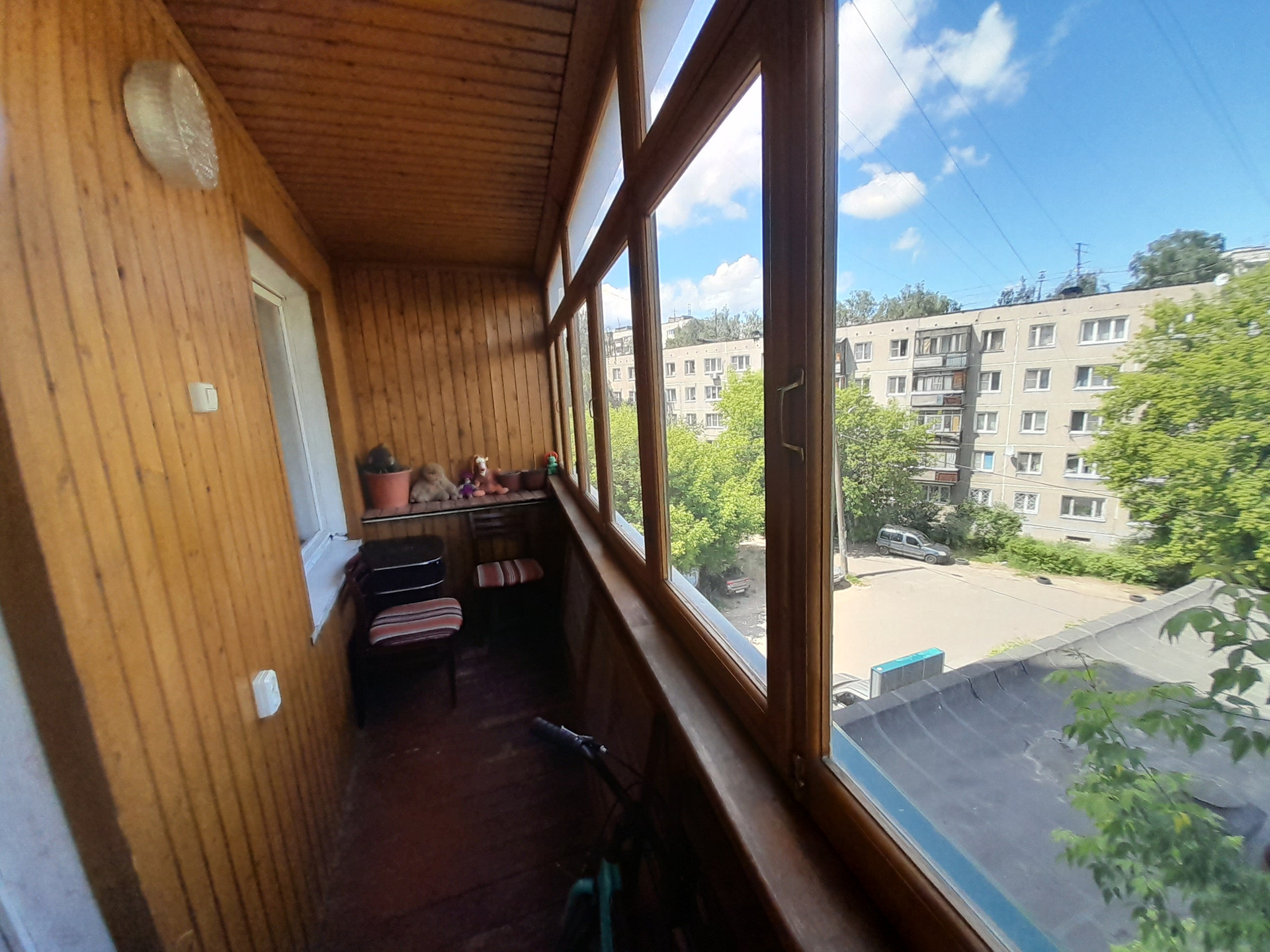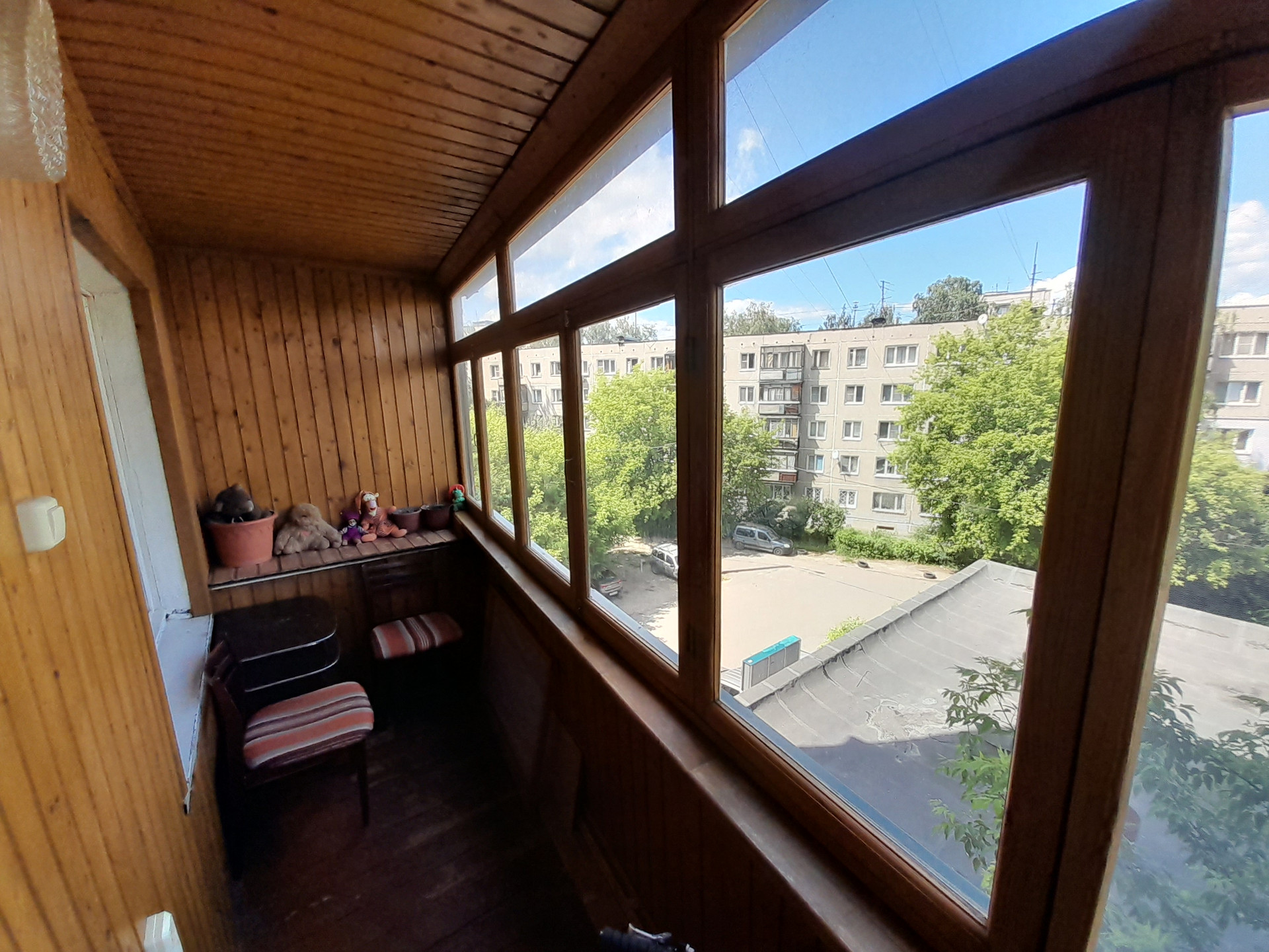 Застеклённая большая лоджия на две комнаты, три пластиковых стеклопакета. В подъезде, за лифтом имеется подсобное помещение на 4 квартиры.