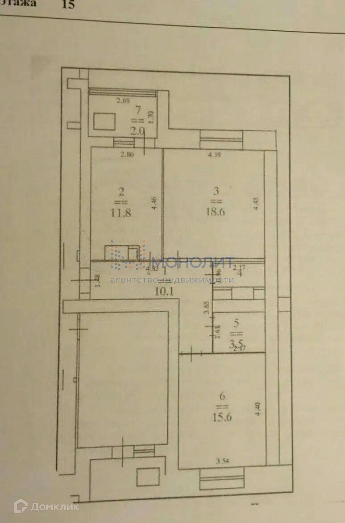 Общая площадь 61.7 м2