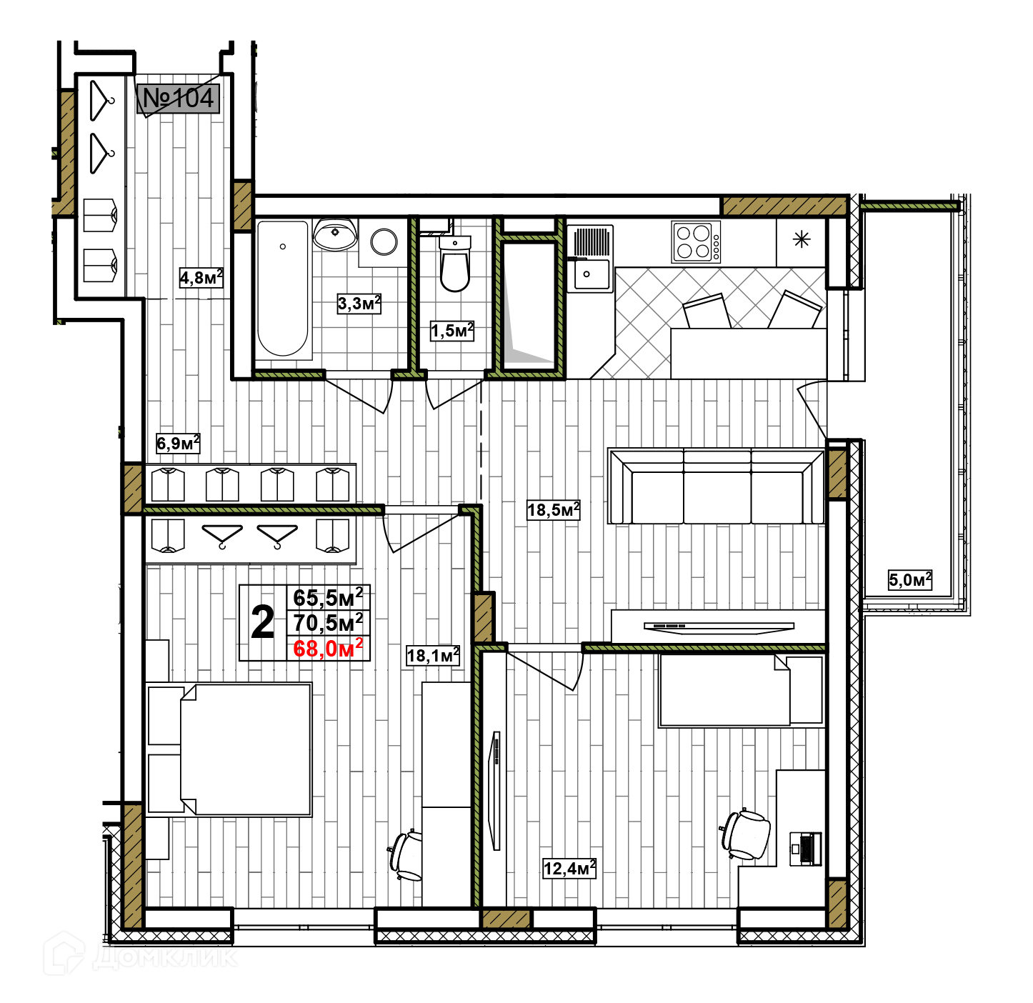 Общая площадь 68 м2
