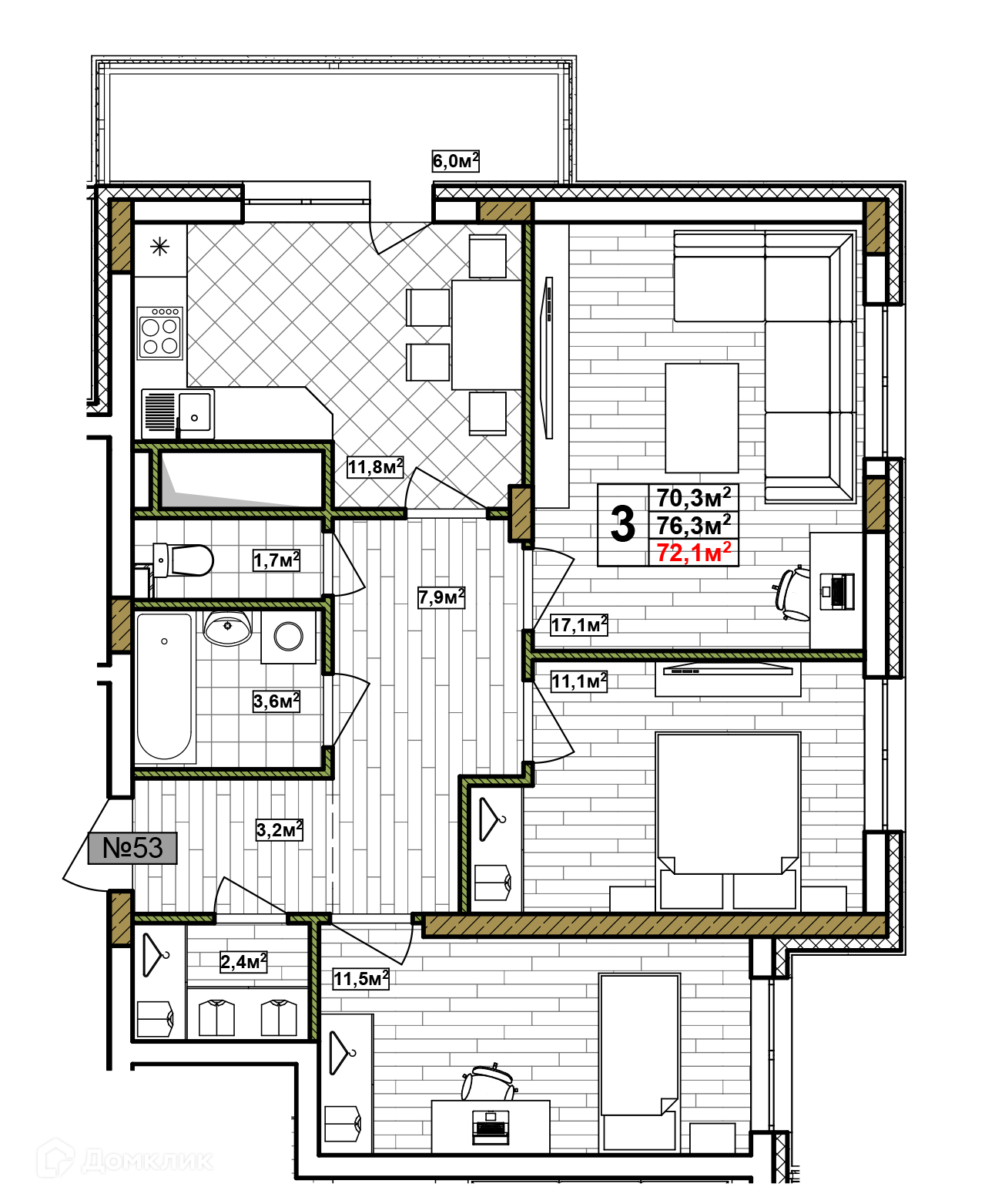Общая площадь 72.1 м2