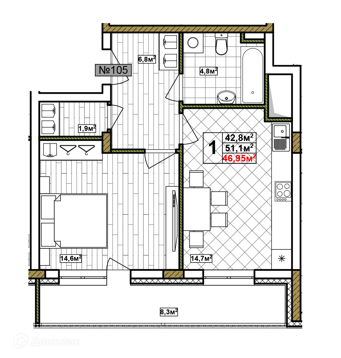 Общая площадь 46.95 м2