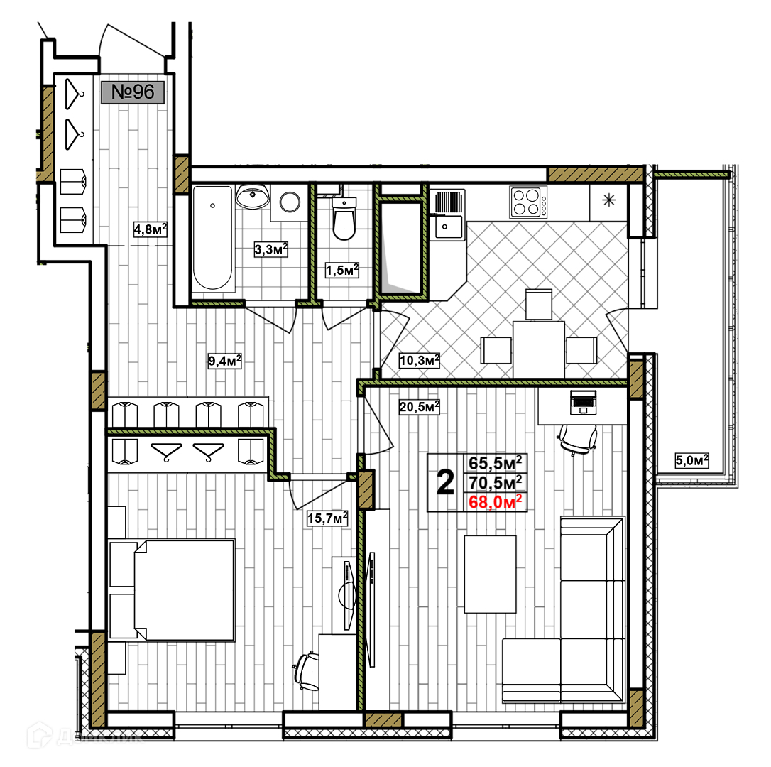 Общая площадь 68 м2