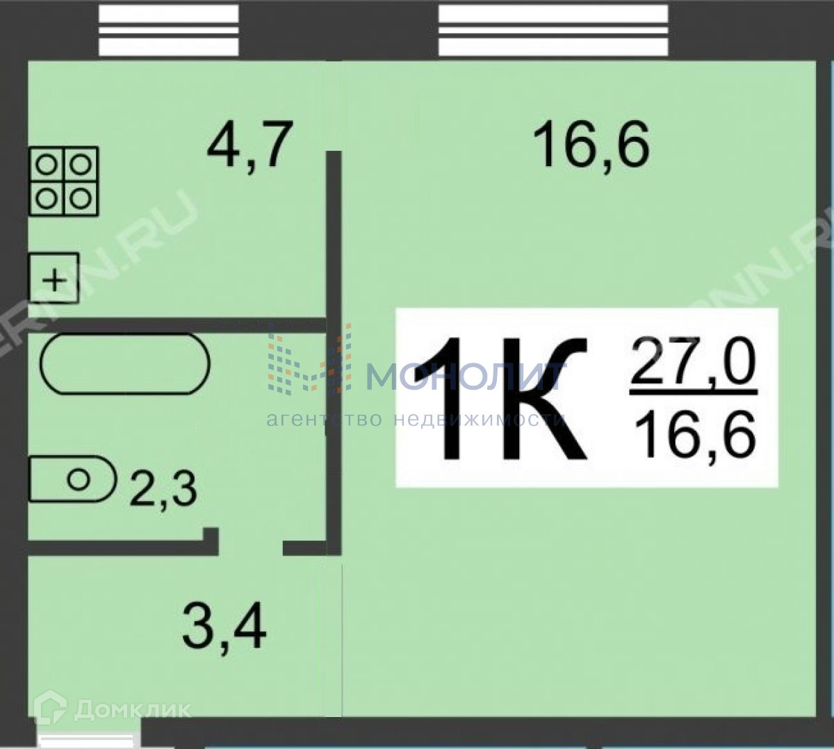 Общая площадь 27 м2