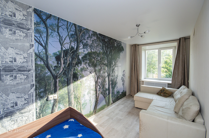 Большим преимуществом этой квартиры является ее расположение в доме: окна выходят на солнечную сторону, а двор тихий и зеленый.
