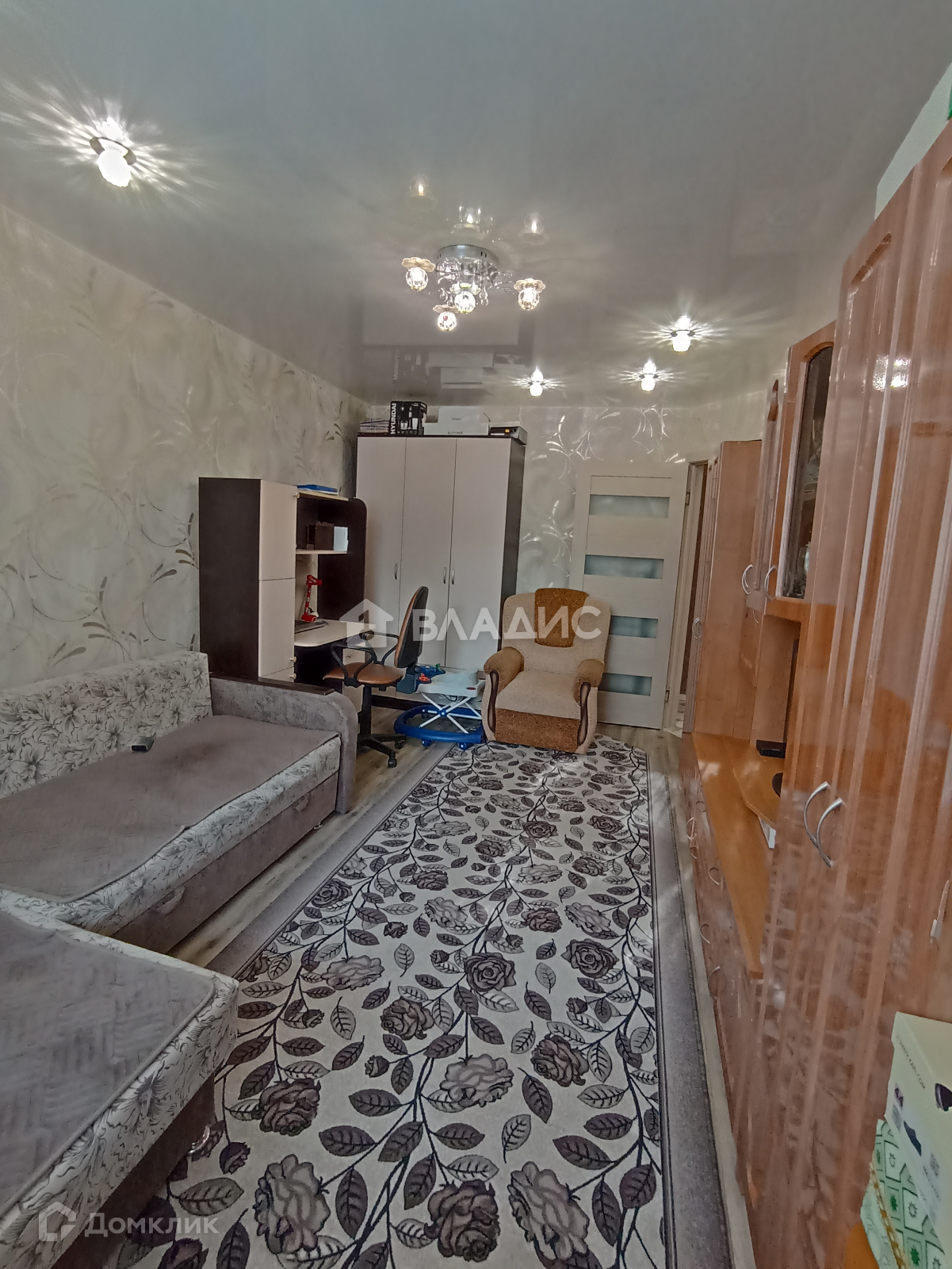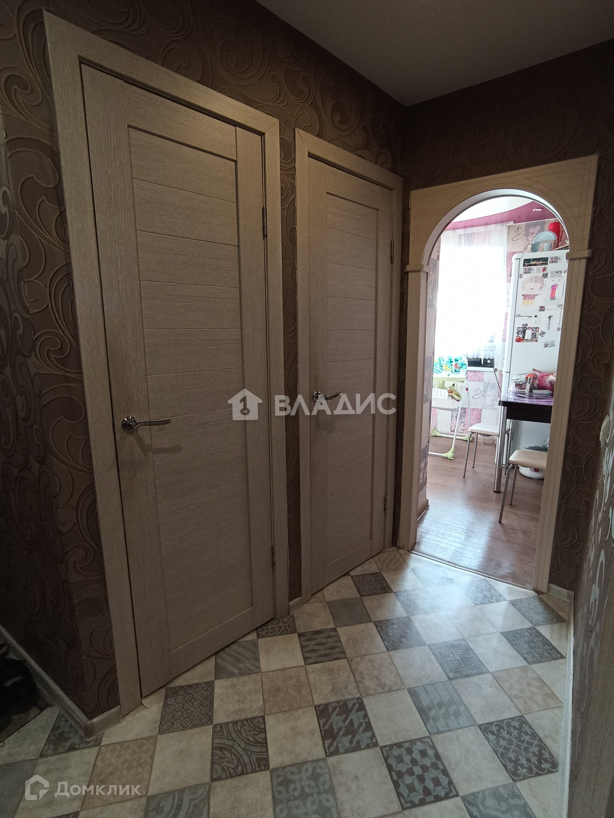 Дом кирпичный. В квартире останется кухонный гарнитур, стенка в прихожей, большой вместительный шкаф в комнате.