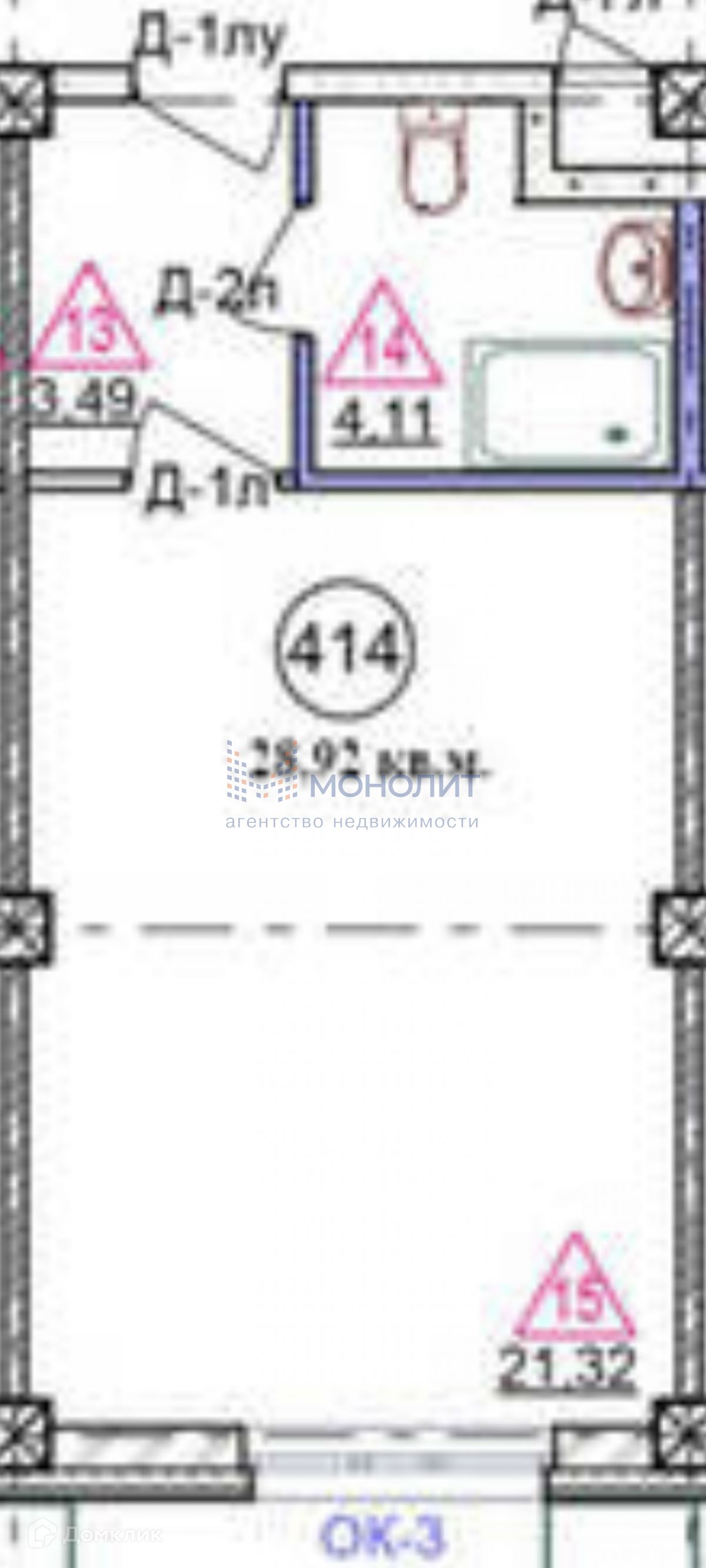 Общая площадь 28.94 м2