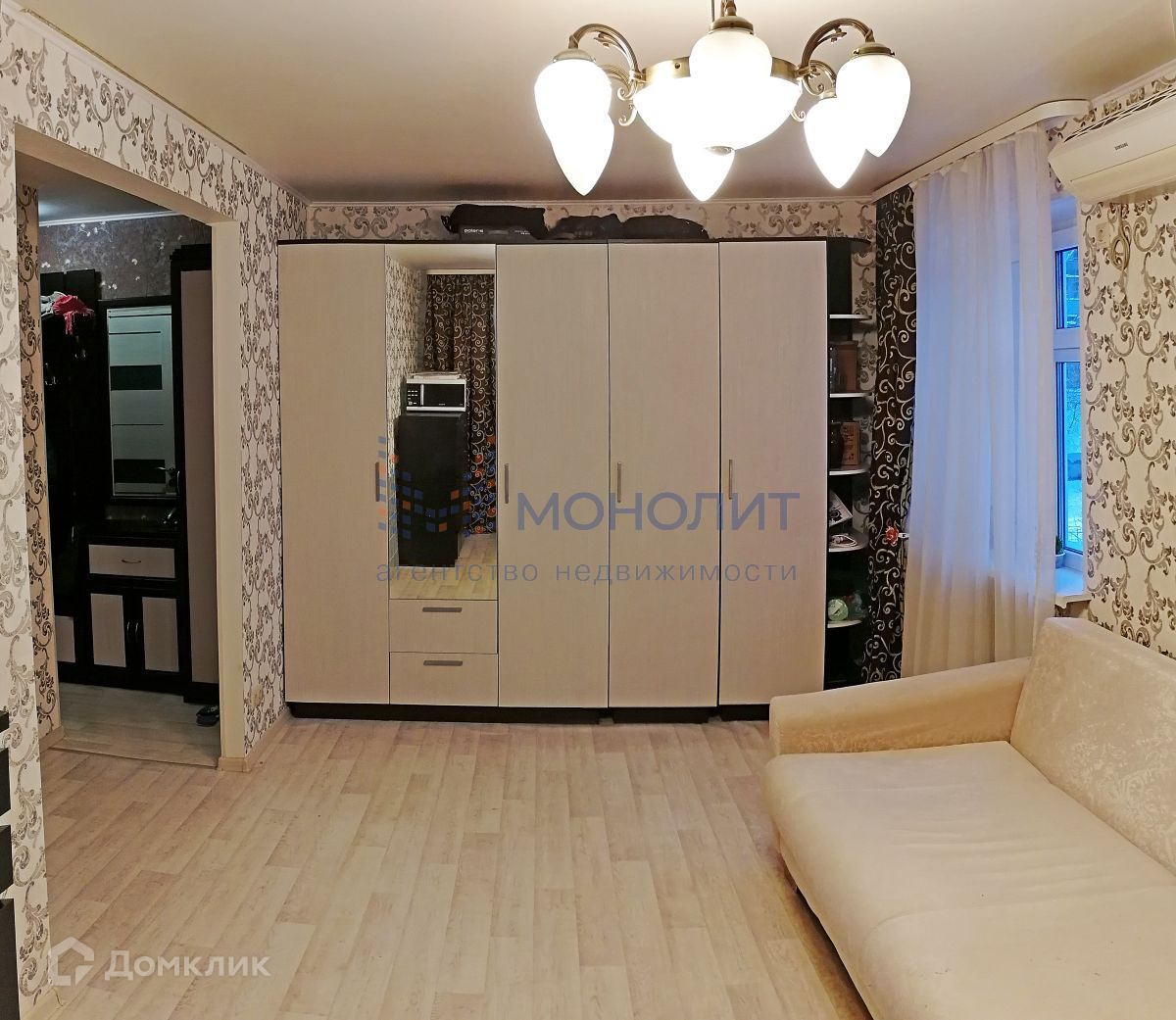 * В квартире остаётся кухонный гарнитур, кондиционер и шкаф в жилой комнате.