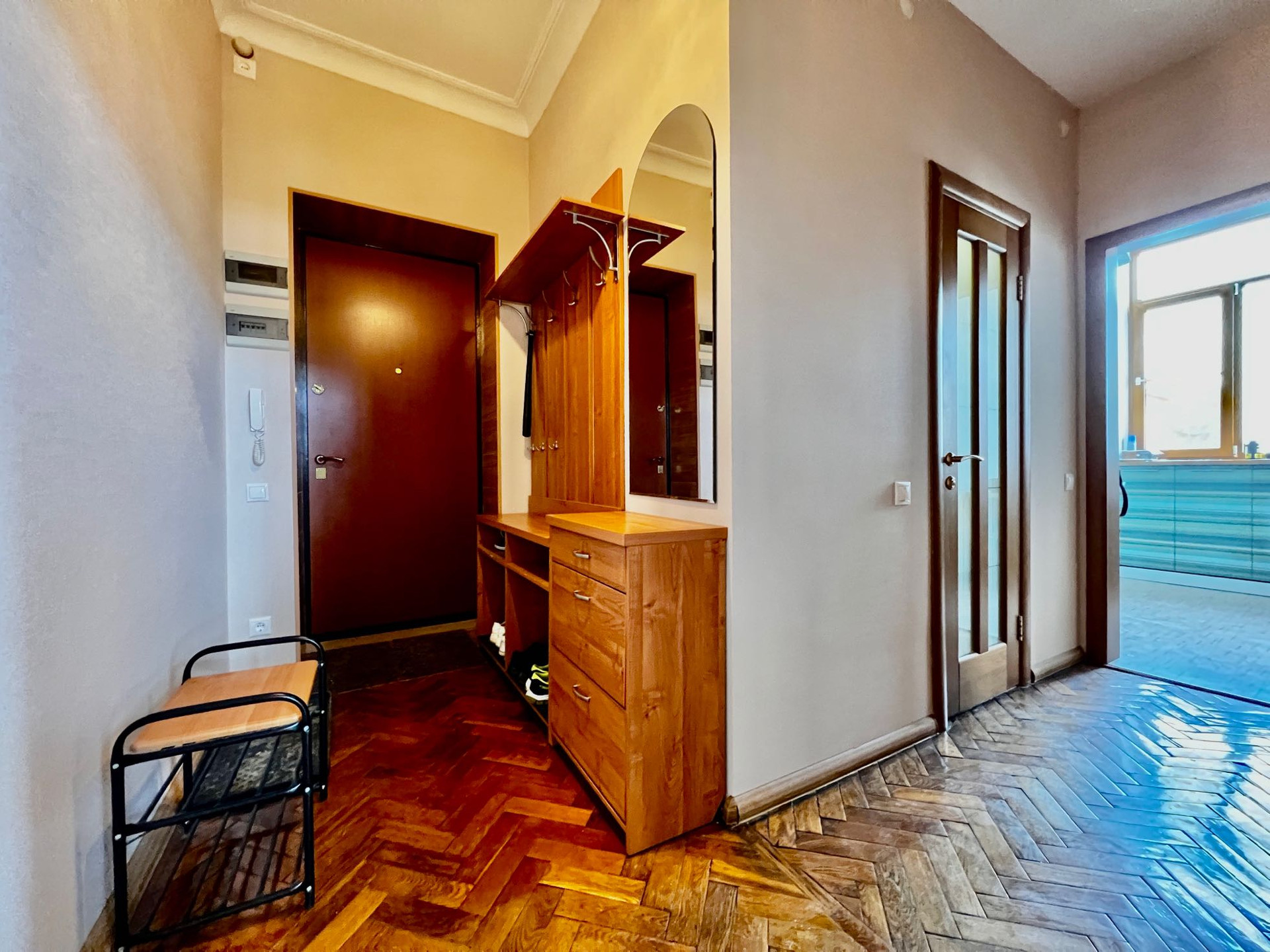 В квартире выполнен качественный ремонт, полностью заменена электропроводка. Из окон открывается прекрасный вид на город.