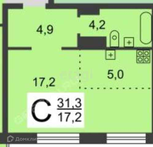Общая площадь 32.2 м2