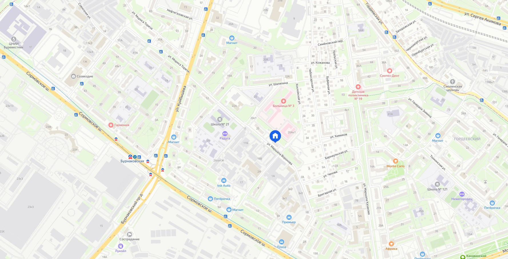 Рядом станция метро Бурнаковская и Канавинская, удобное расположение автобусных остановок.