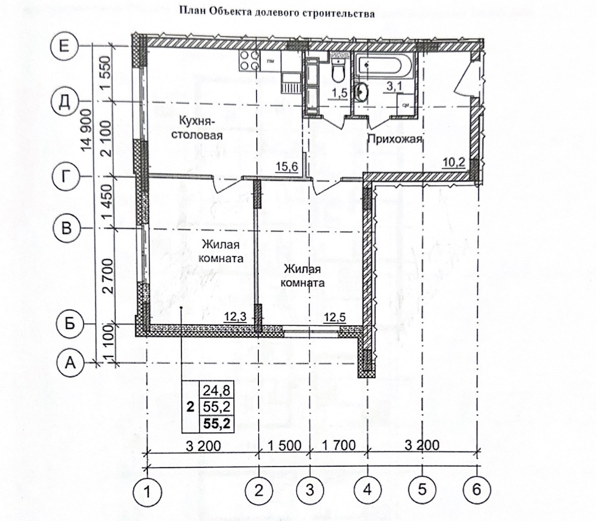 Общая площадь 55.2 м2