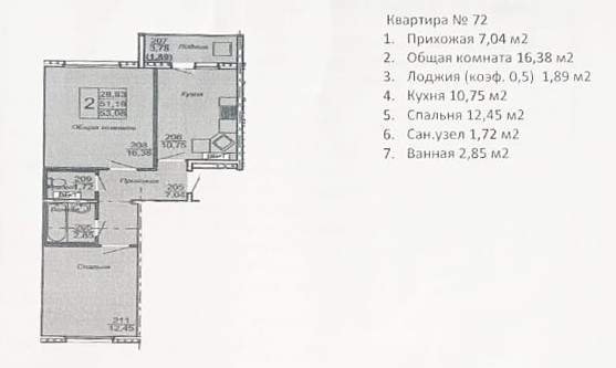 Общая площадь 55 м2