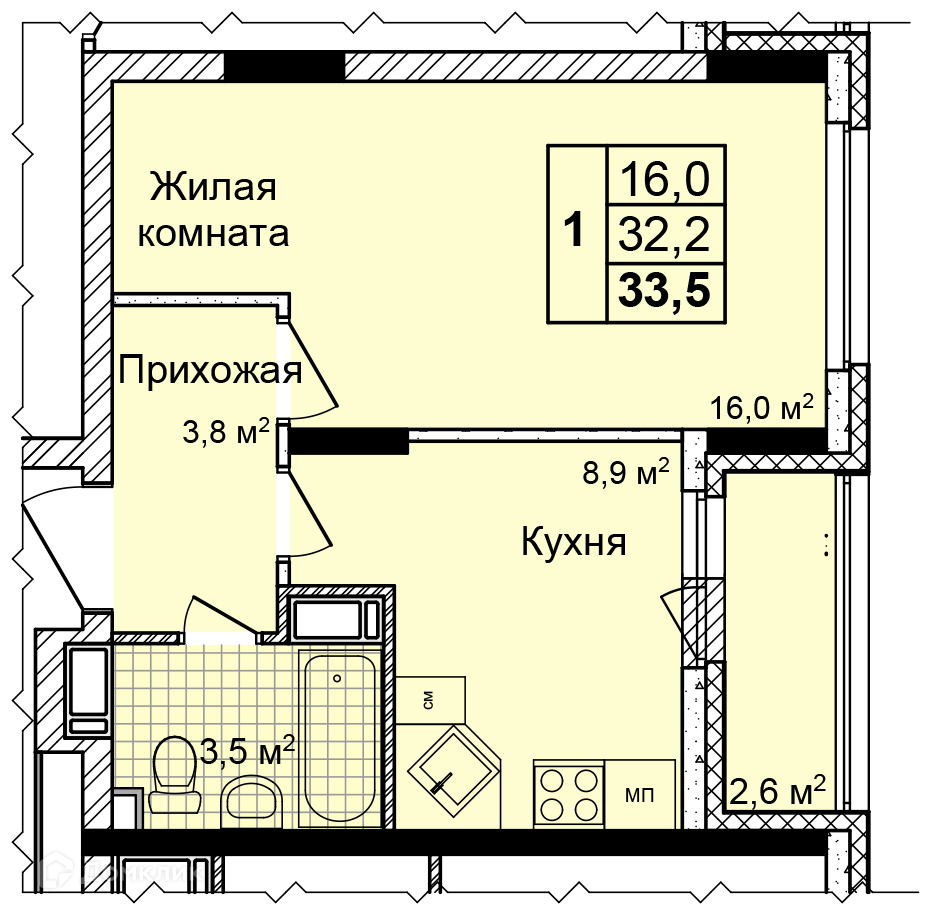 Общая площадь 33.1 м2