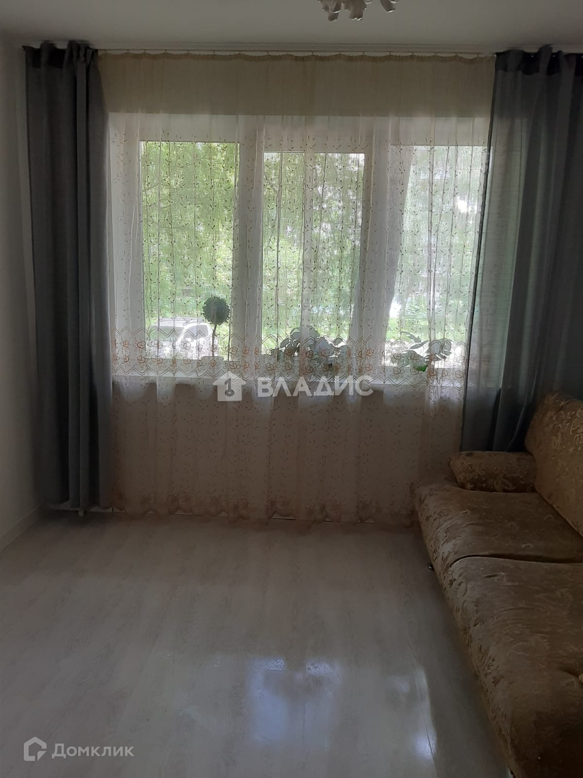 Квартира готова к проживанию, стены выравняны и покрашены в светлые тона. На полу ламинат, окна заменены, потолок натяжной.