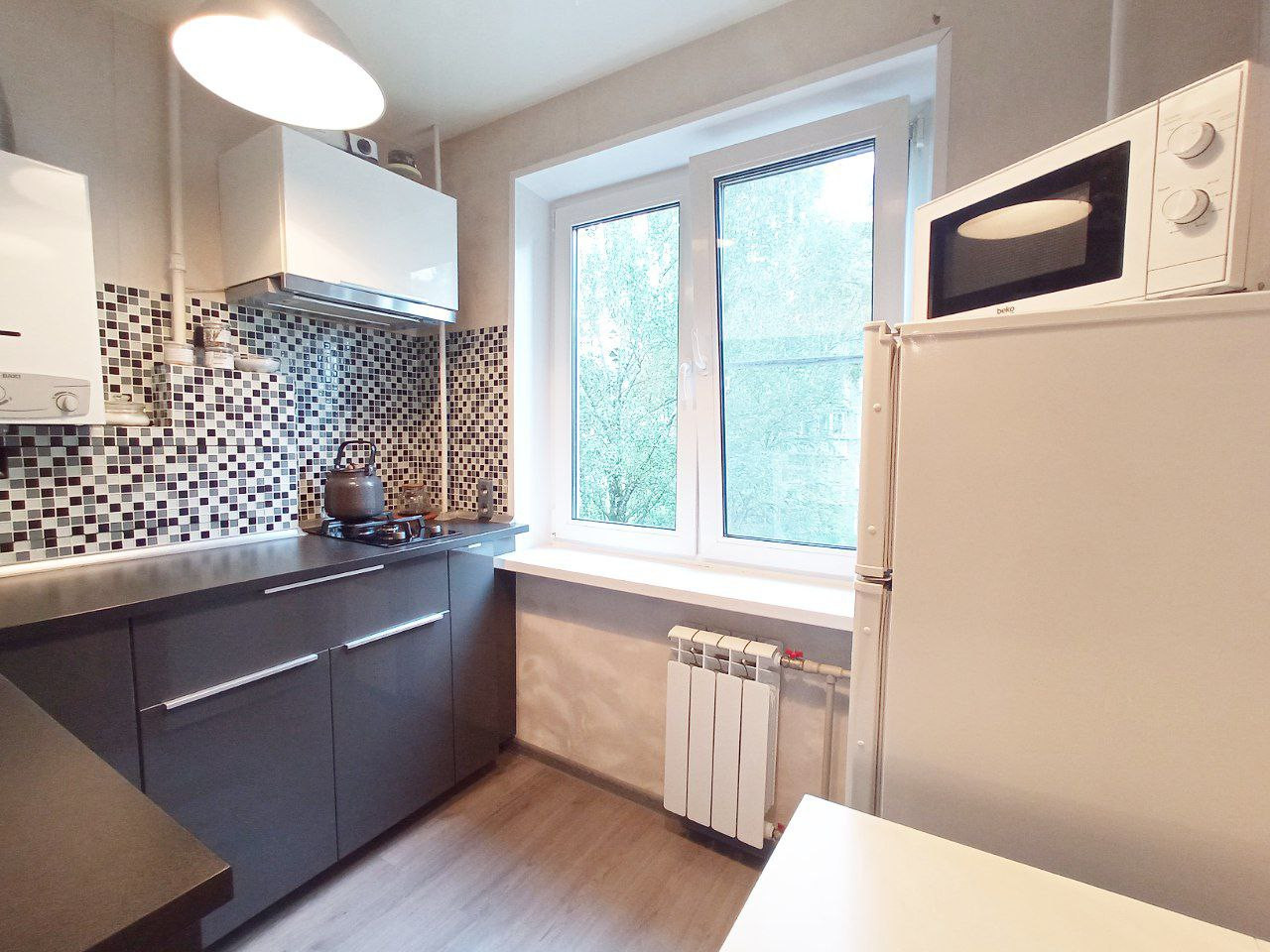 Квартира уютная,   качественный ремонт в светлых тонах.   Окна во двор.