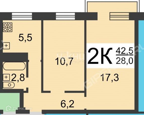 Общая площадь 43 м2