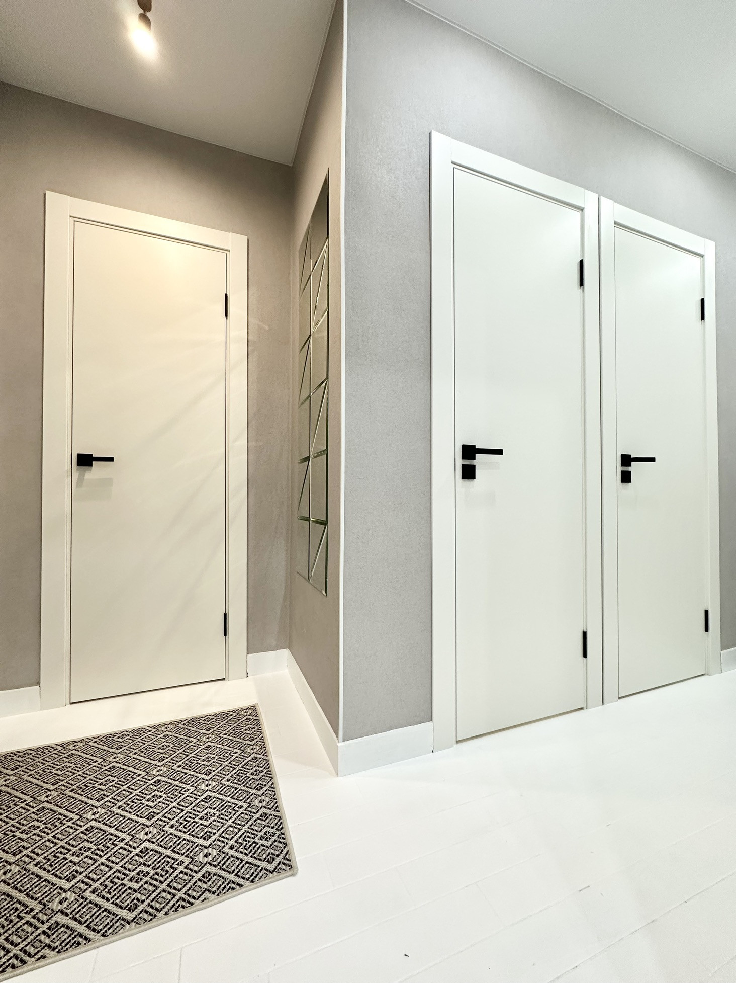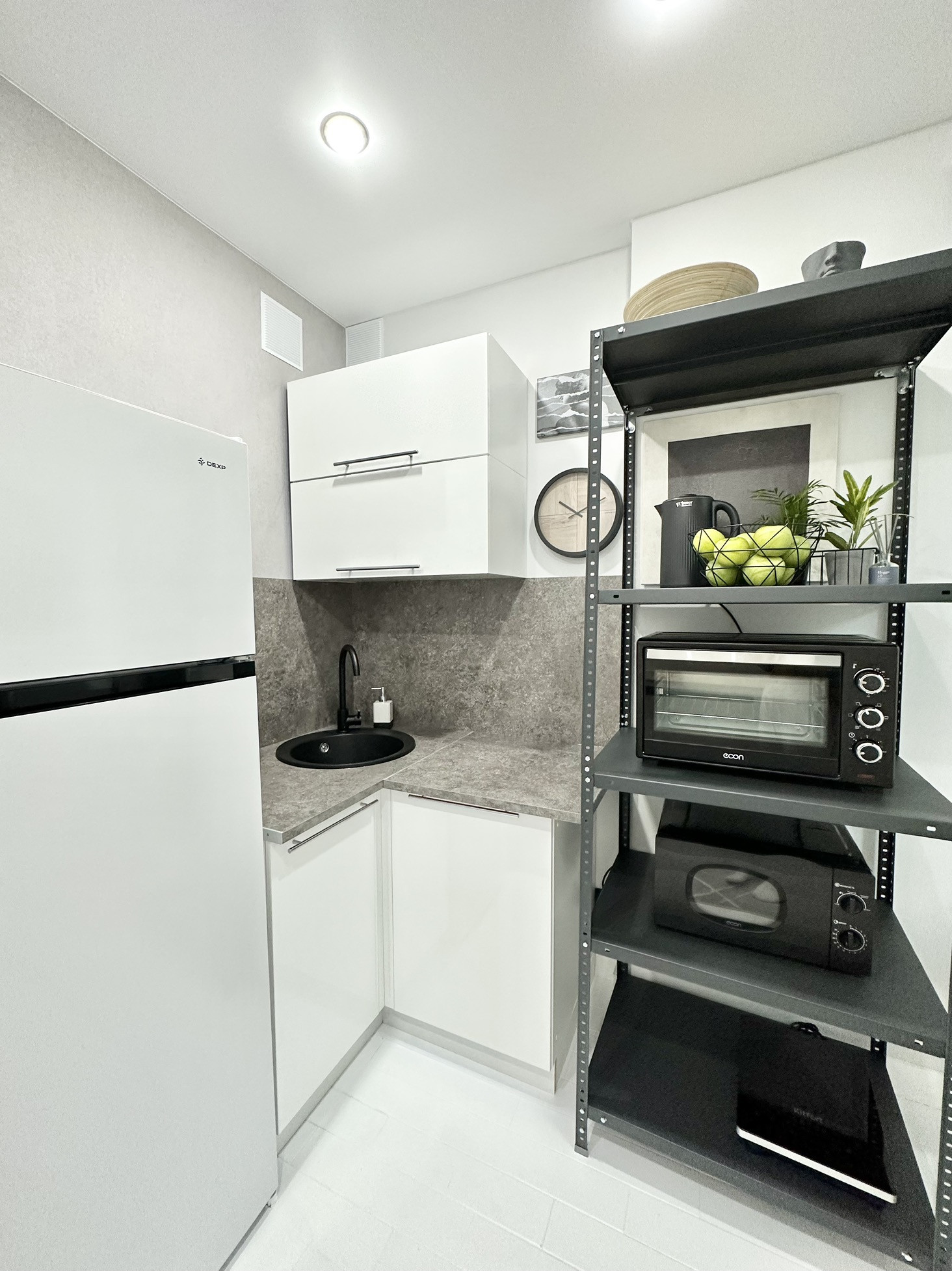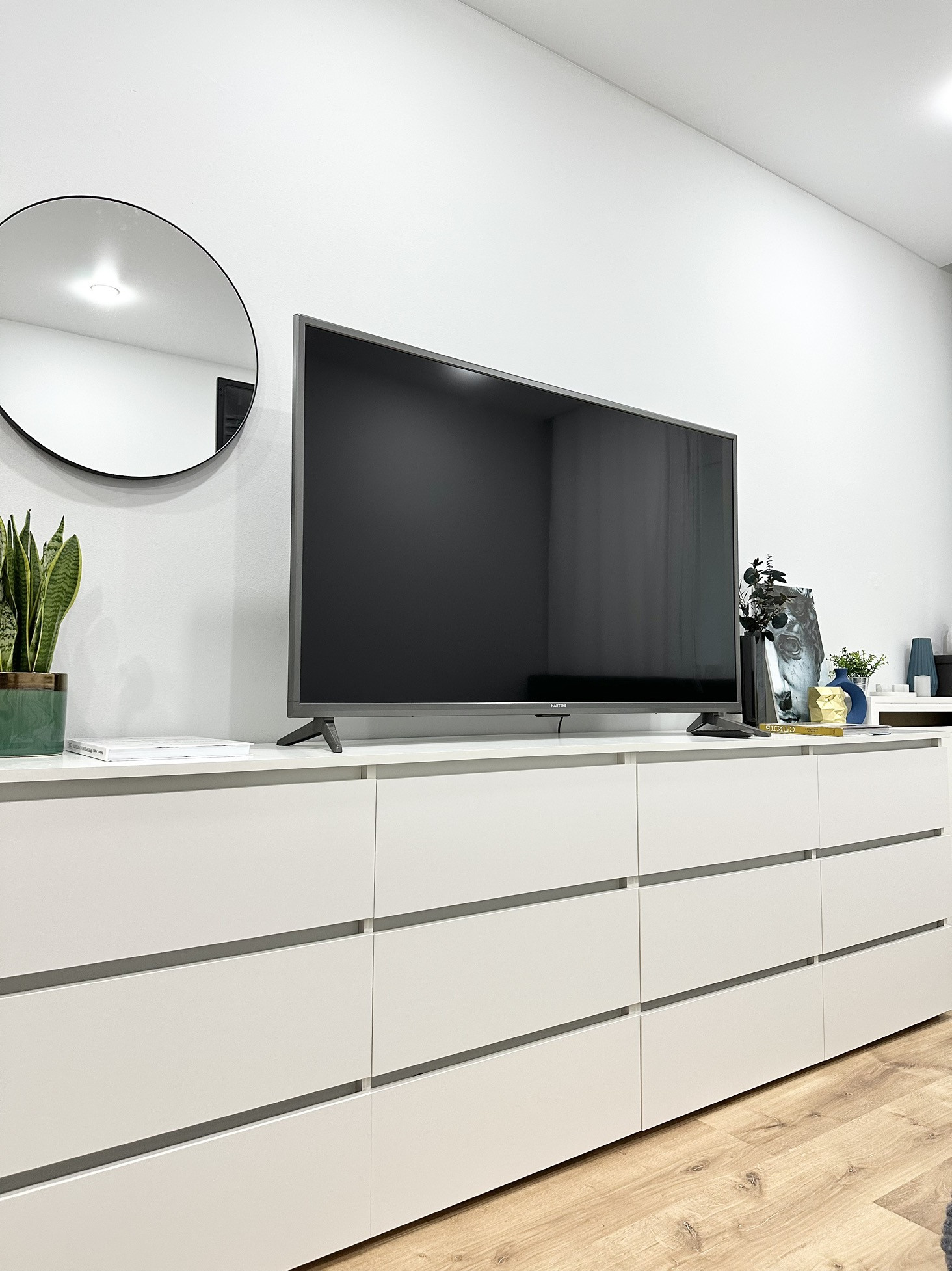 В квартире остаётся вся мебель и техника как на фото: кухонный гарнитур, вешала и полки в гардеробных системах, кровать, матрас, комоды, обеденный стол, 3 стула, телевизор, занавески, зеркальное панно в прихожей, холодильник, стиральная машина, электрический чайник, микроволновка, духовая печь, индукционная плита, барная стойка, барные стулья (2 шт).