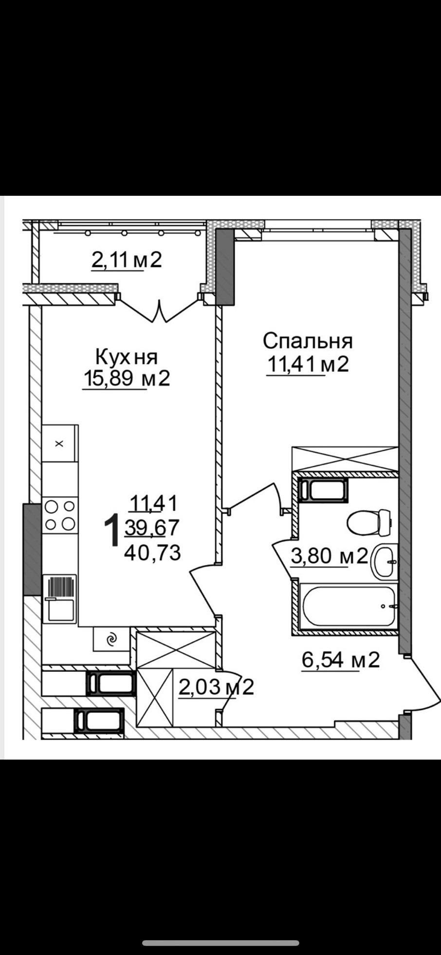 Общая площадь 40 м2