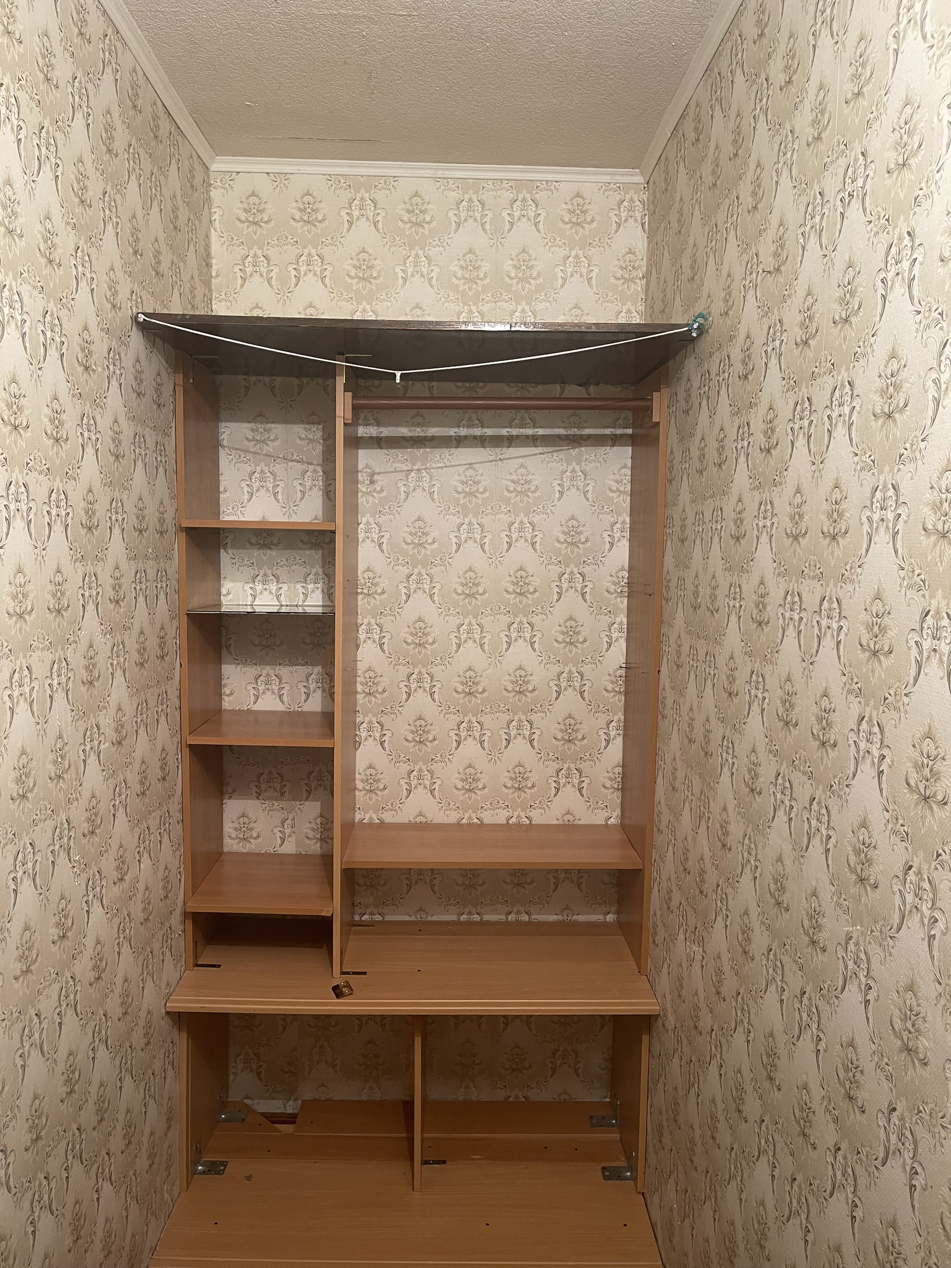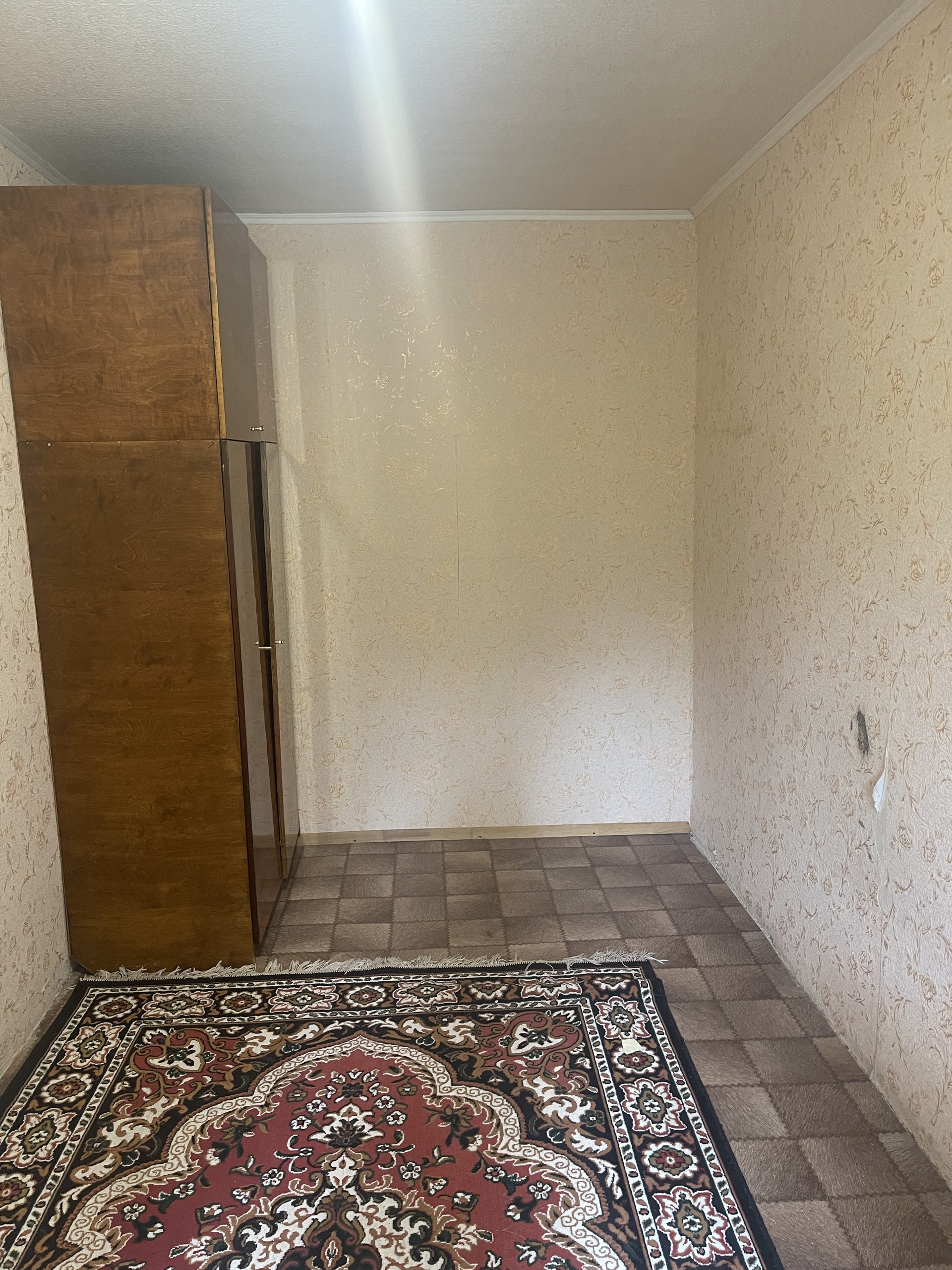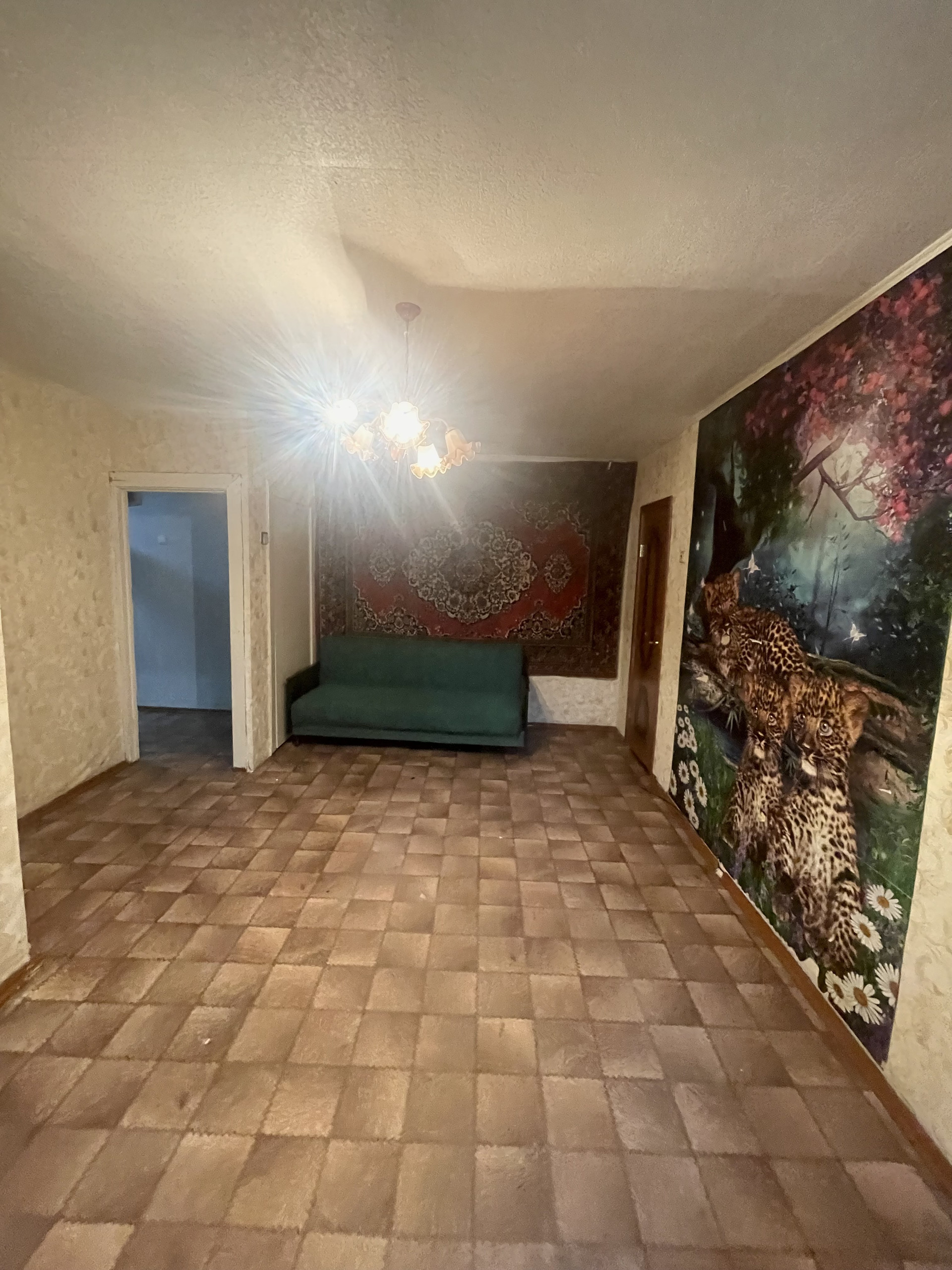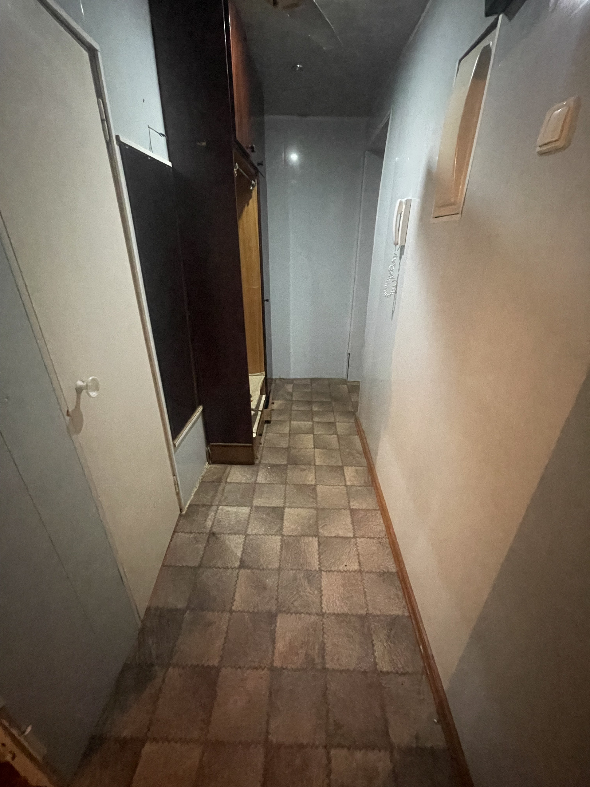 Прихожая просторная, широкая – 5,2 кв.метров. дом кирпичный, окна высоко, на окнах решетки. Можно перепланировать в трехкомнатную квартиру, есть кладовка.