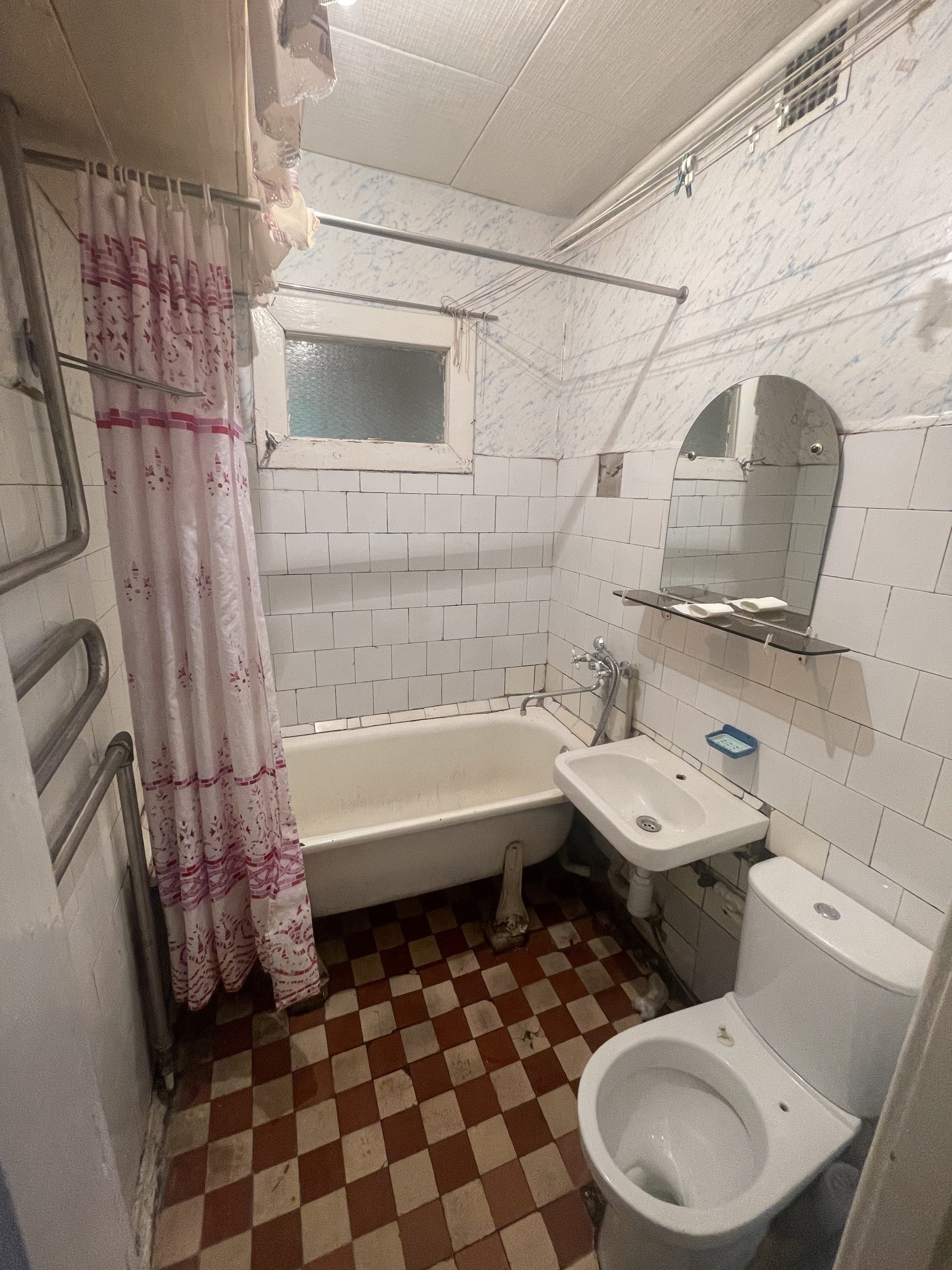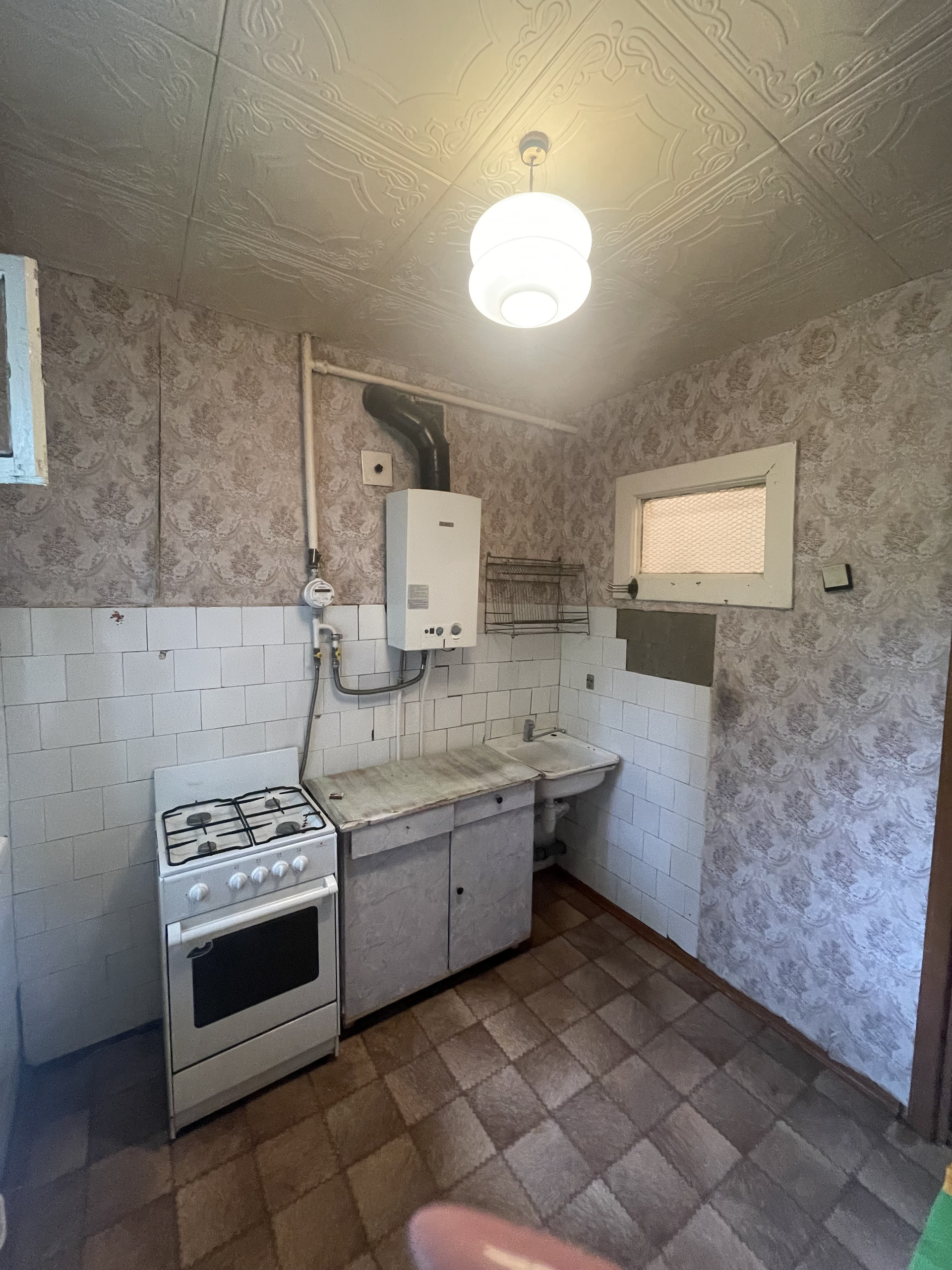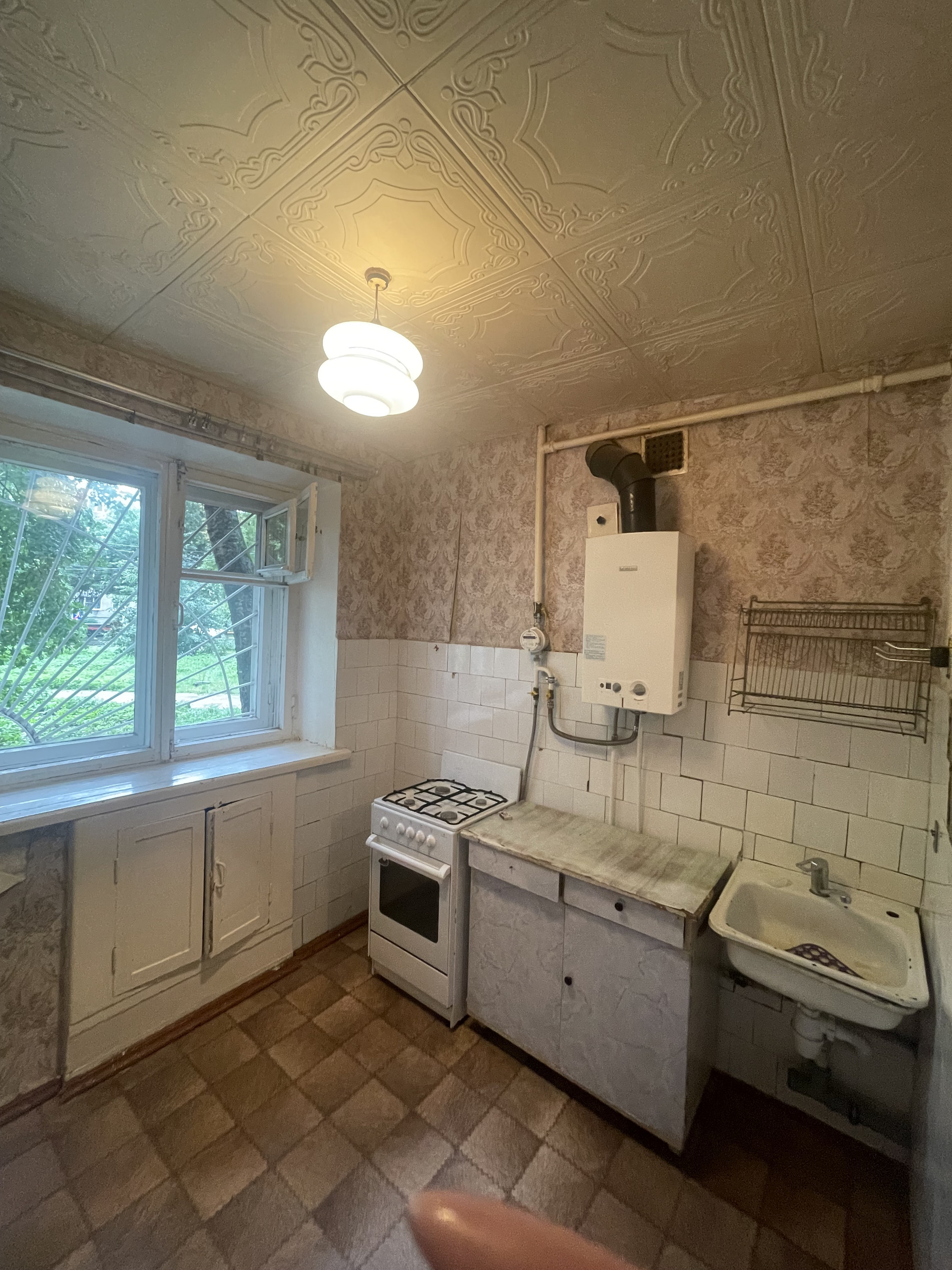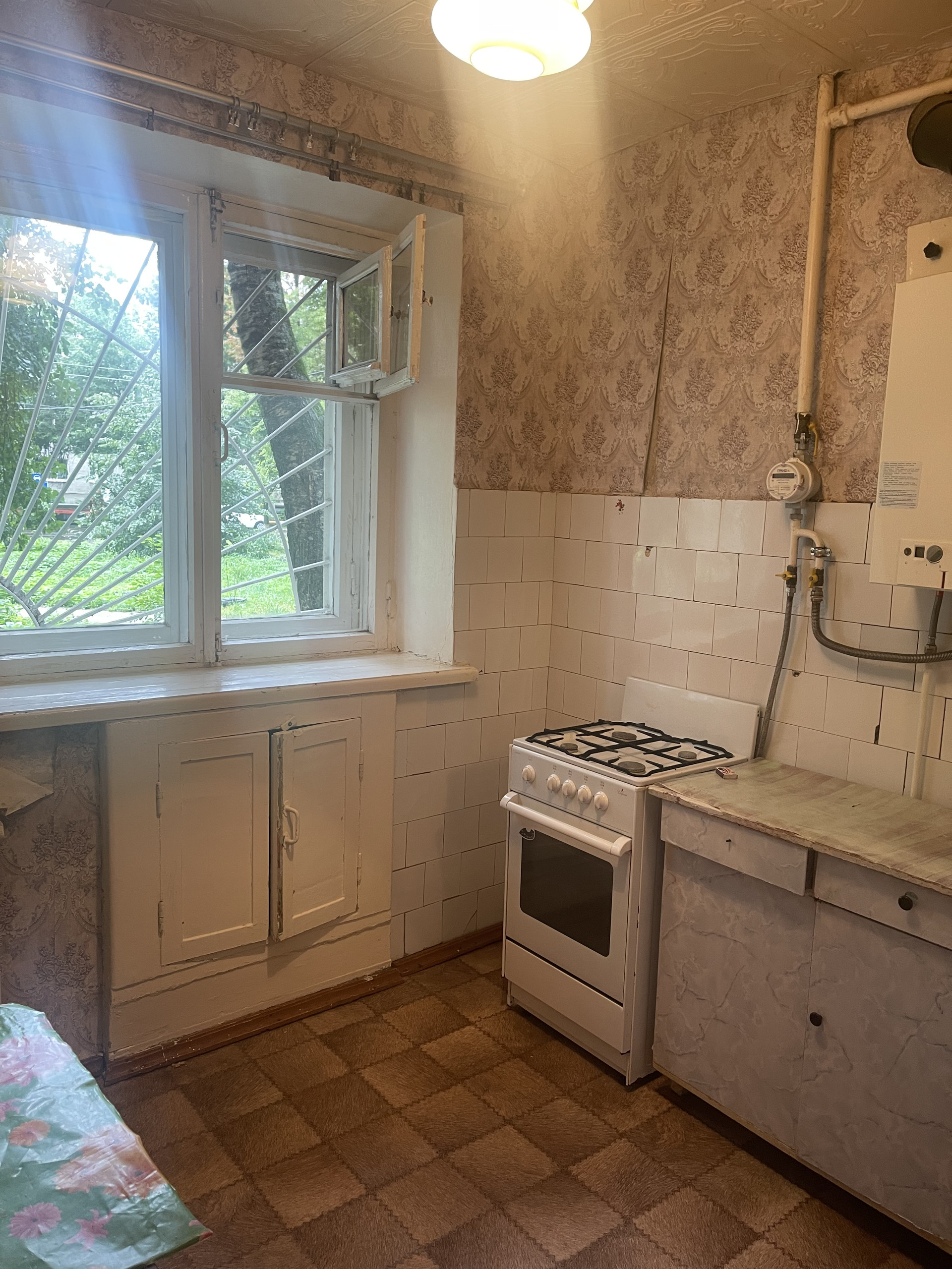 Кухня – почти 6 кв. метров квадратной формы; С\узел совмещенный - 3.00 кв.метров; межкомнатные двери. Установлены счетчики на газ и воду.