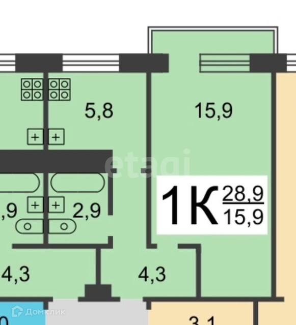 Общая площадь 29 м2