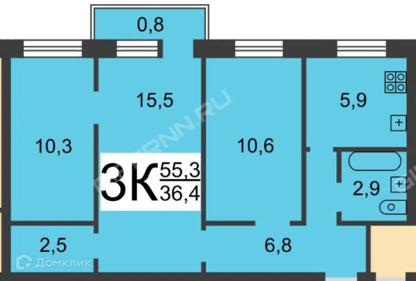 Общая площадь 56 м2