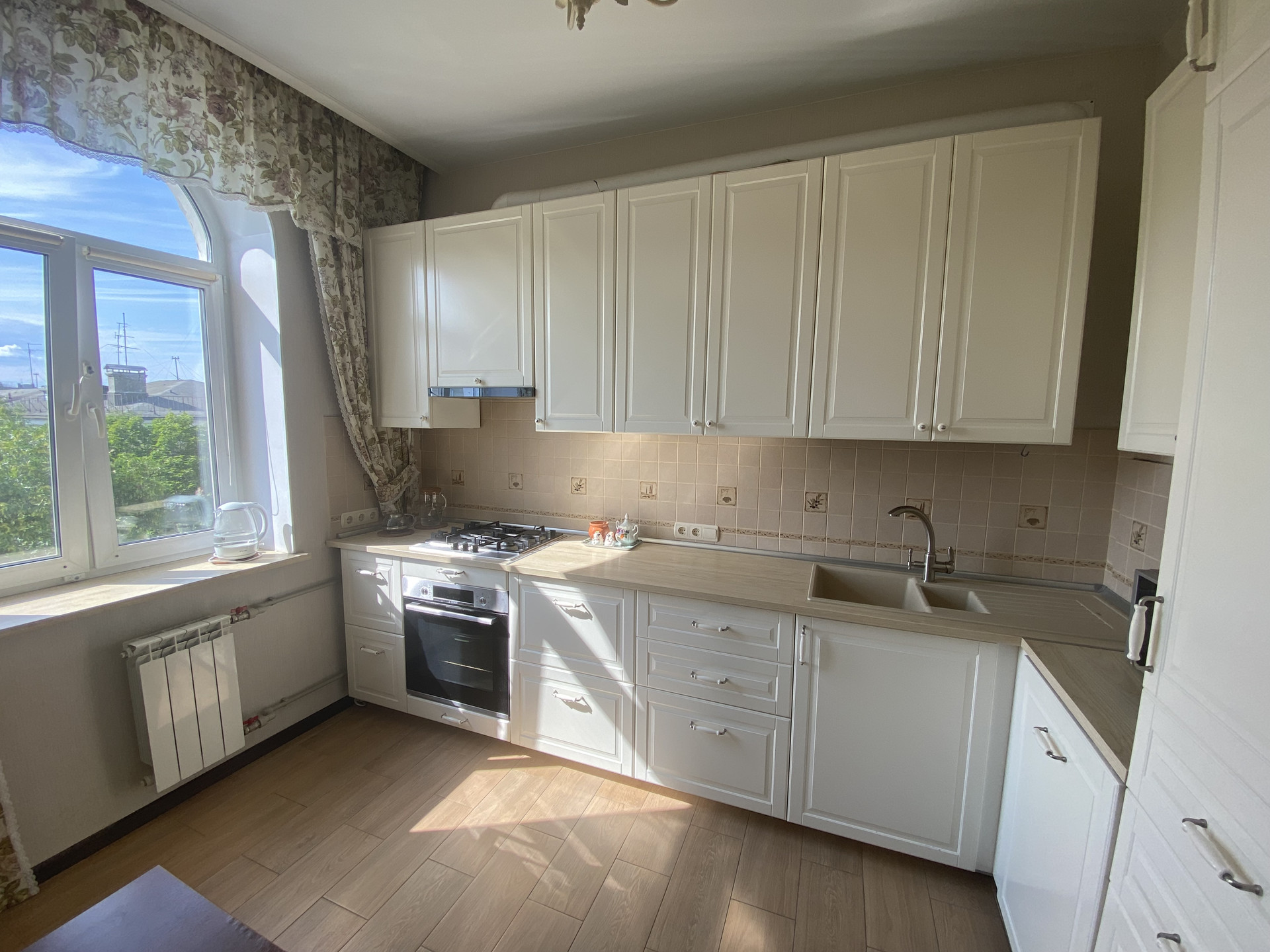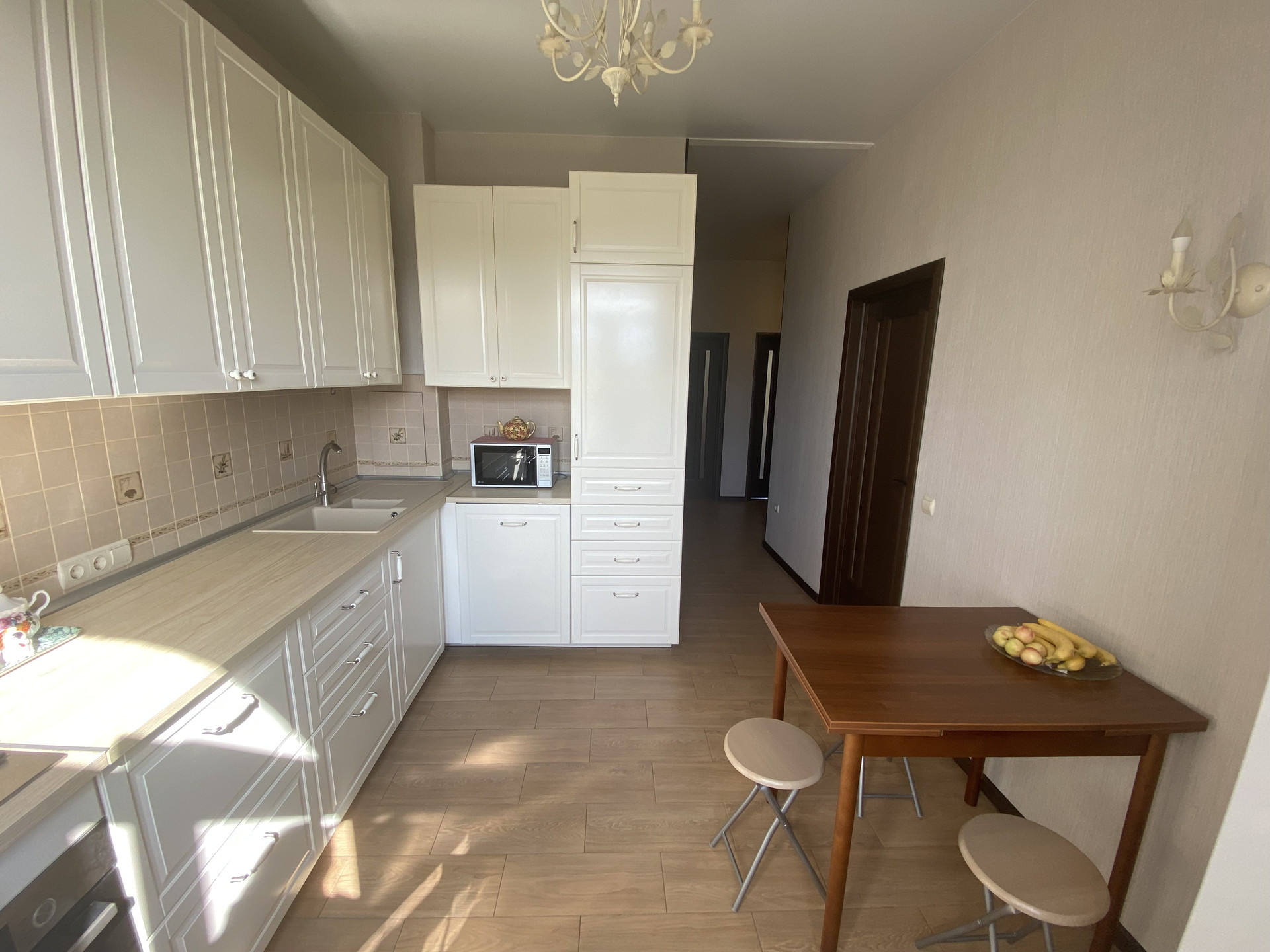 - в комнатах – качественный ламинат; кухня, коридор – керамогранит: