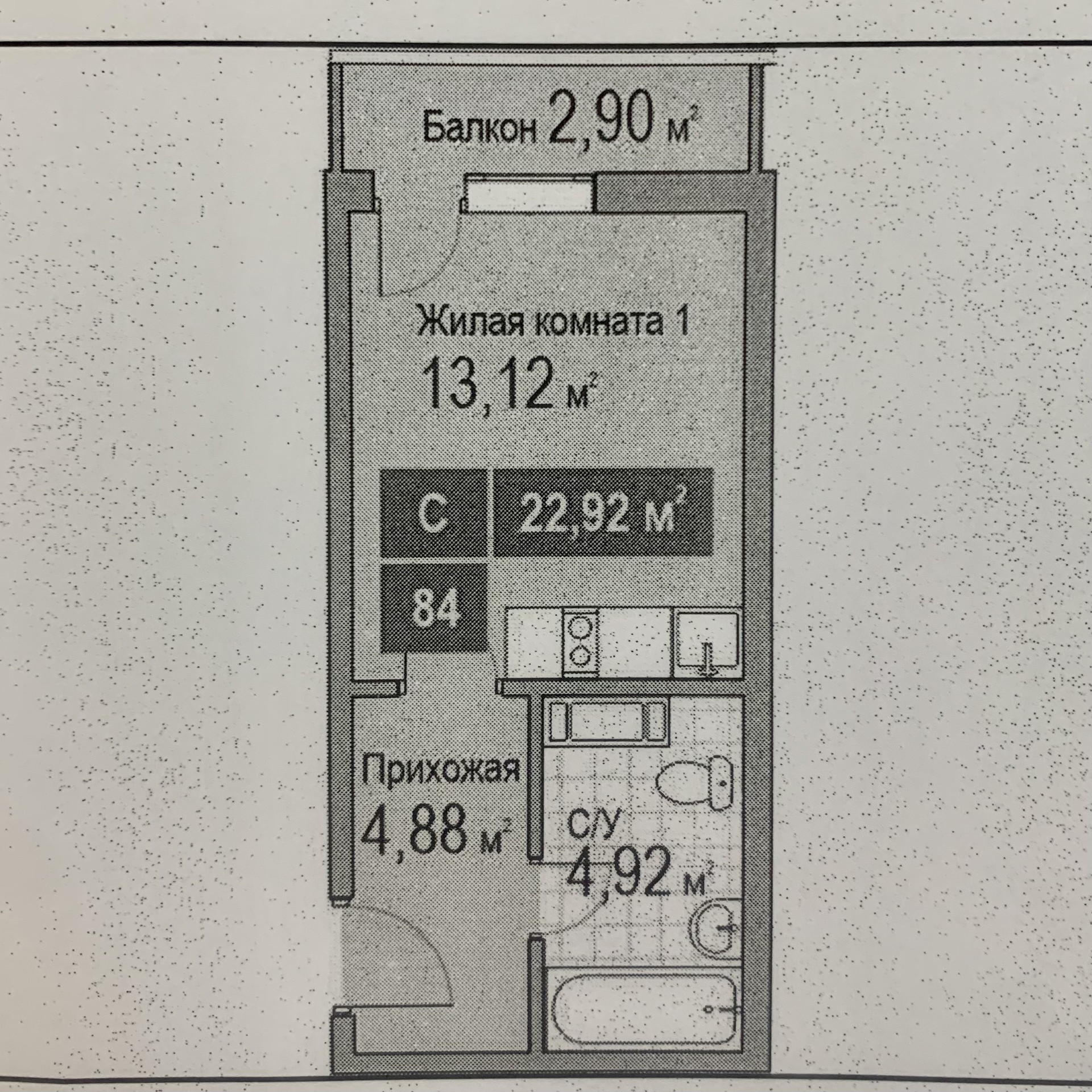 Общая площадь 25.82 м2