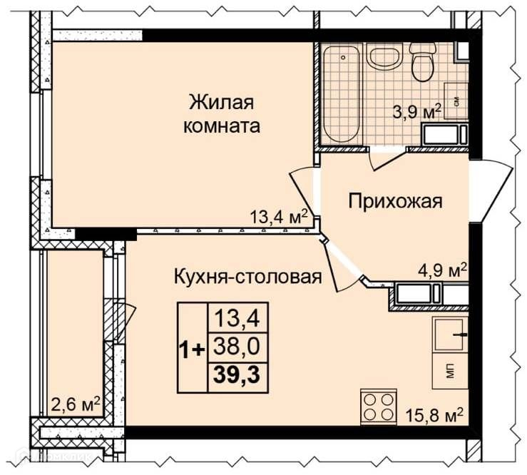 Общая площадь 39.3 м2