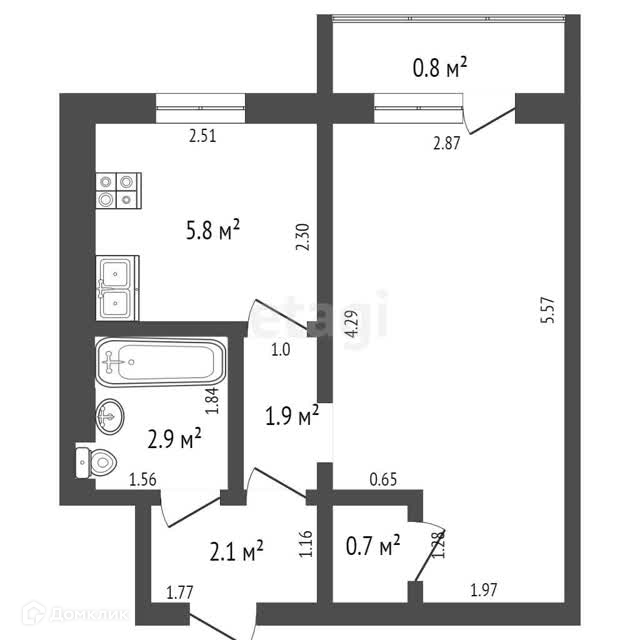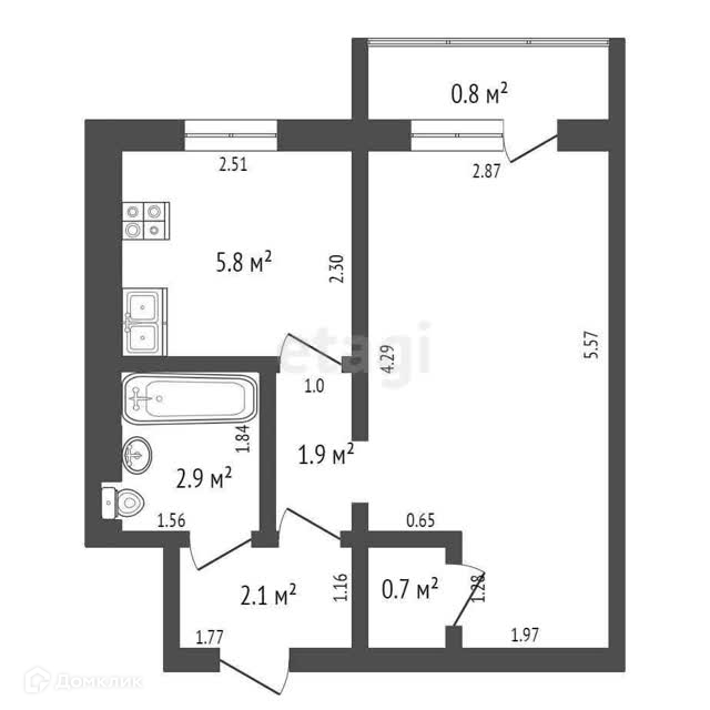 Площадь кухни 5.8 м2
