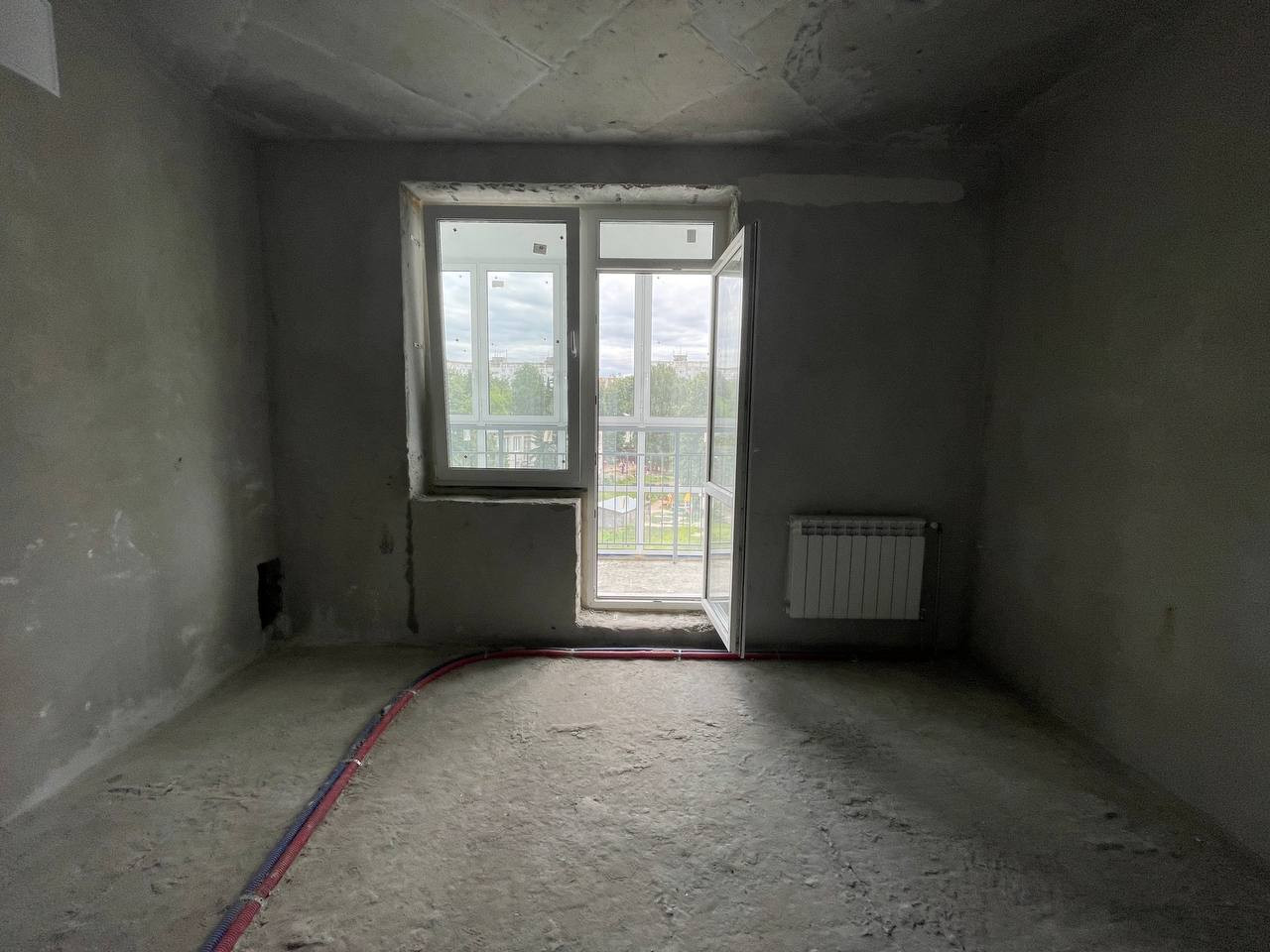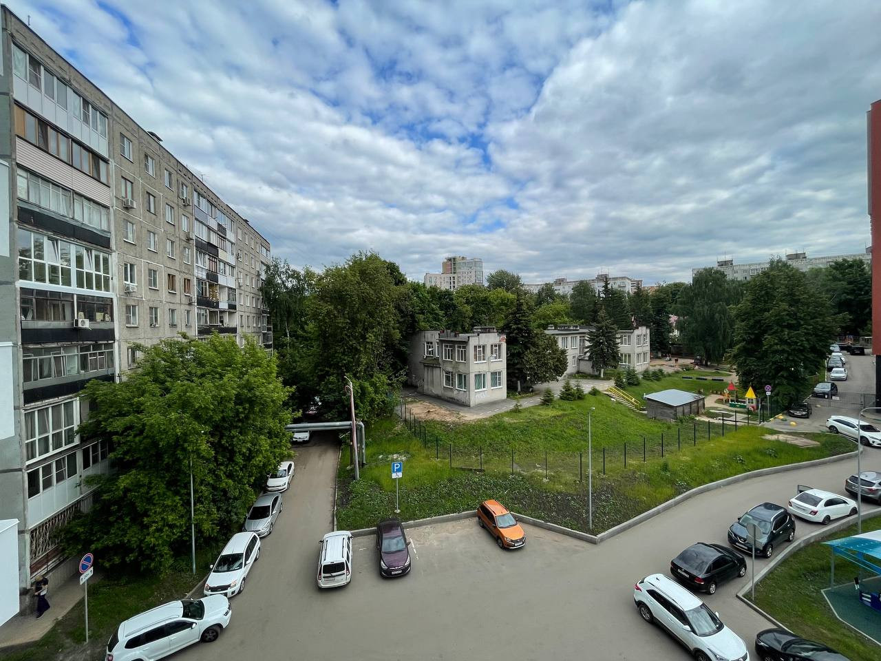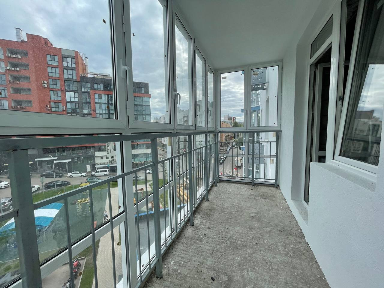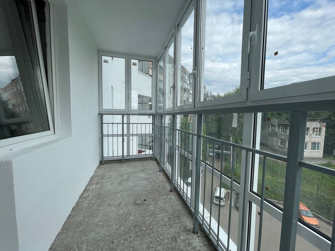 В квартире просторный балкон с панорамными окнами. Виды из окна во двор.