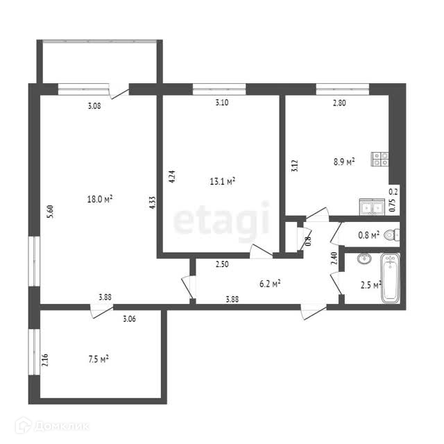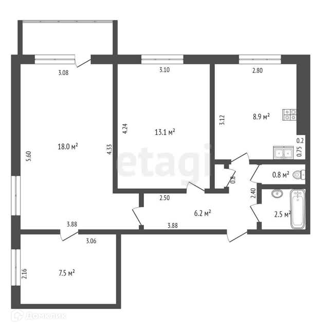 Общая площадь 57.9 м2