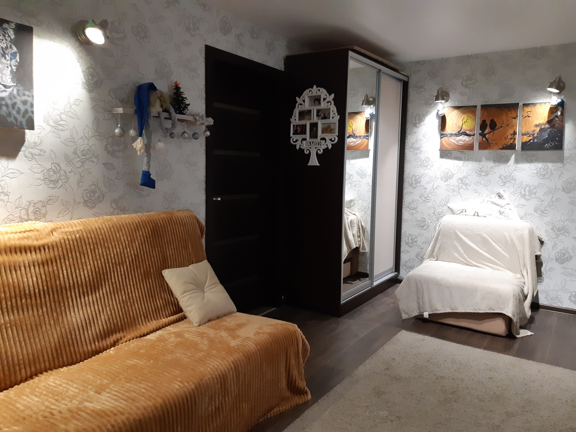 Дальняя комната отведена под спальню, в ней сделана просторная гардеробная с освещением.