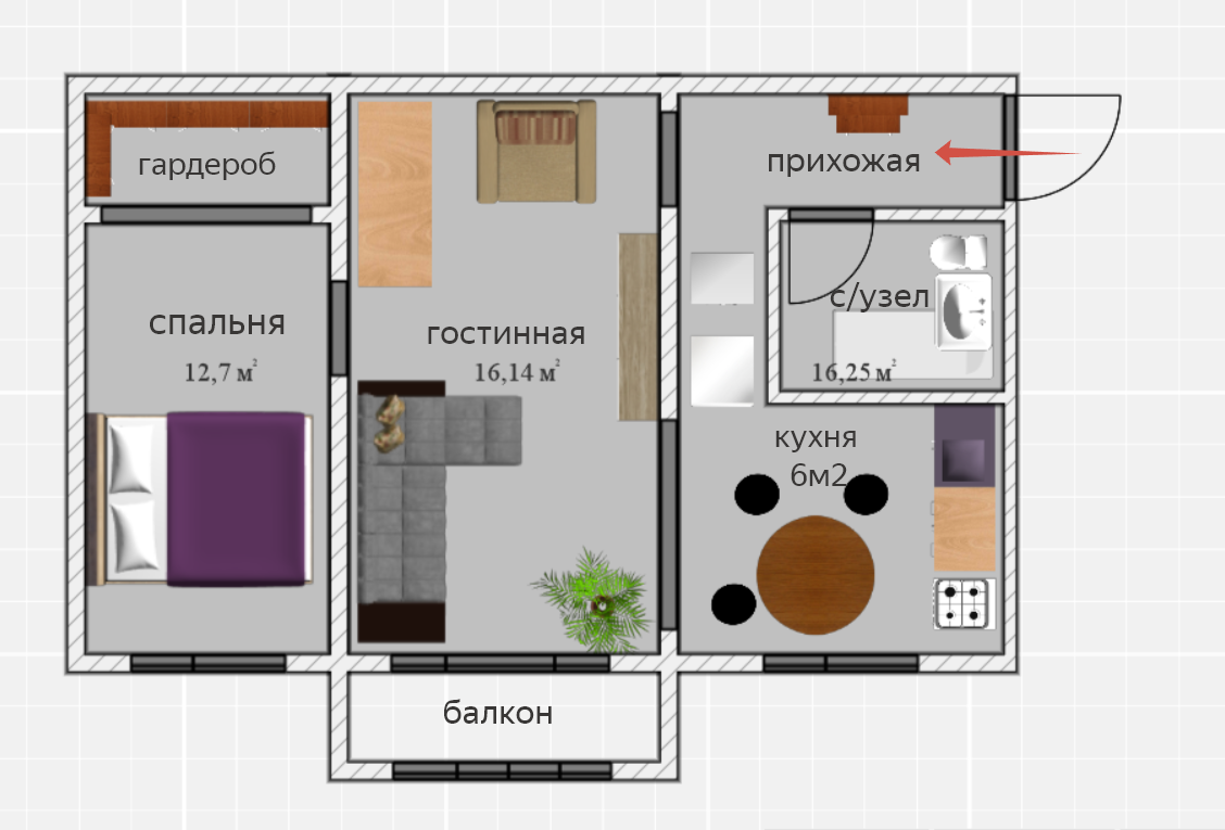 Площадь кухни 6 м2